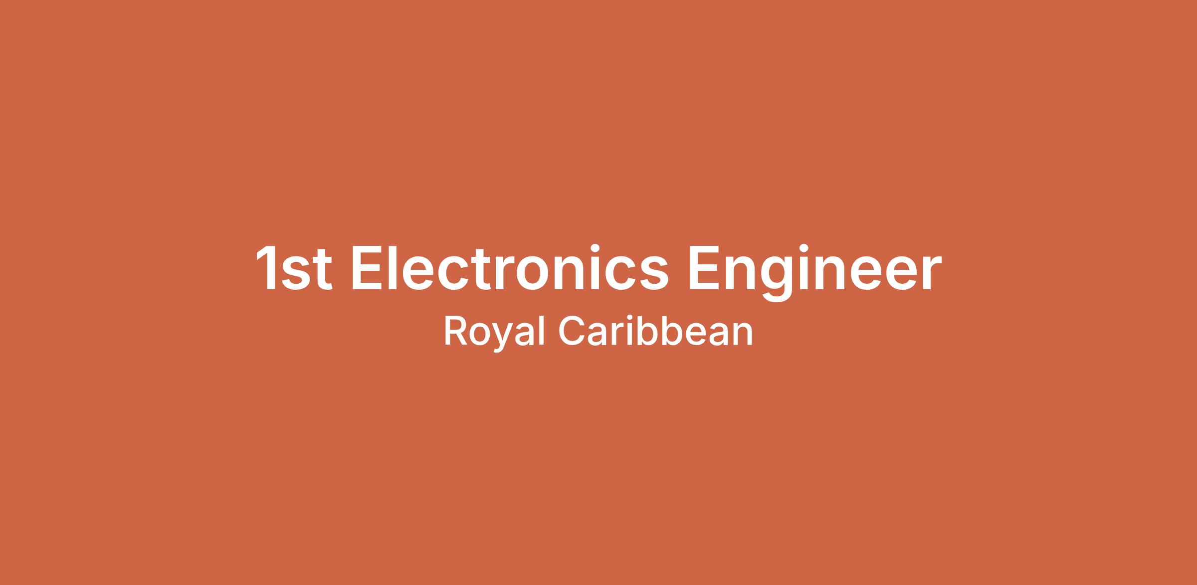 The 1st Electronics Engineer performs duties as directed by the Chief Electrical Engineer. The role involves maintenance and repair of specified electrical and electronic equipment and installations onboard.
