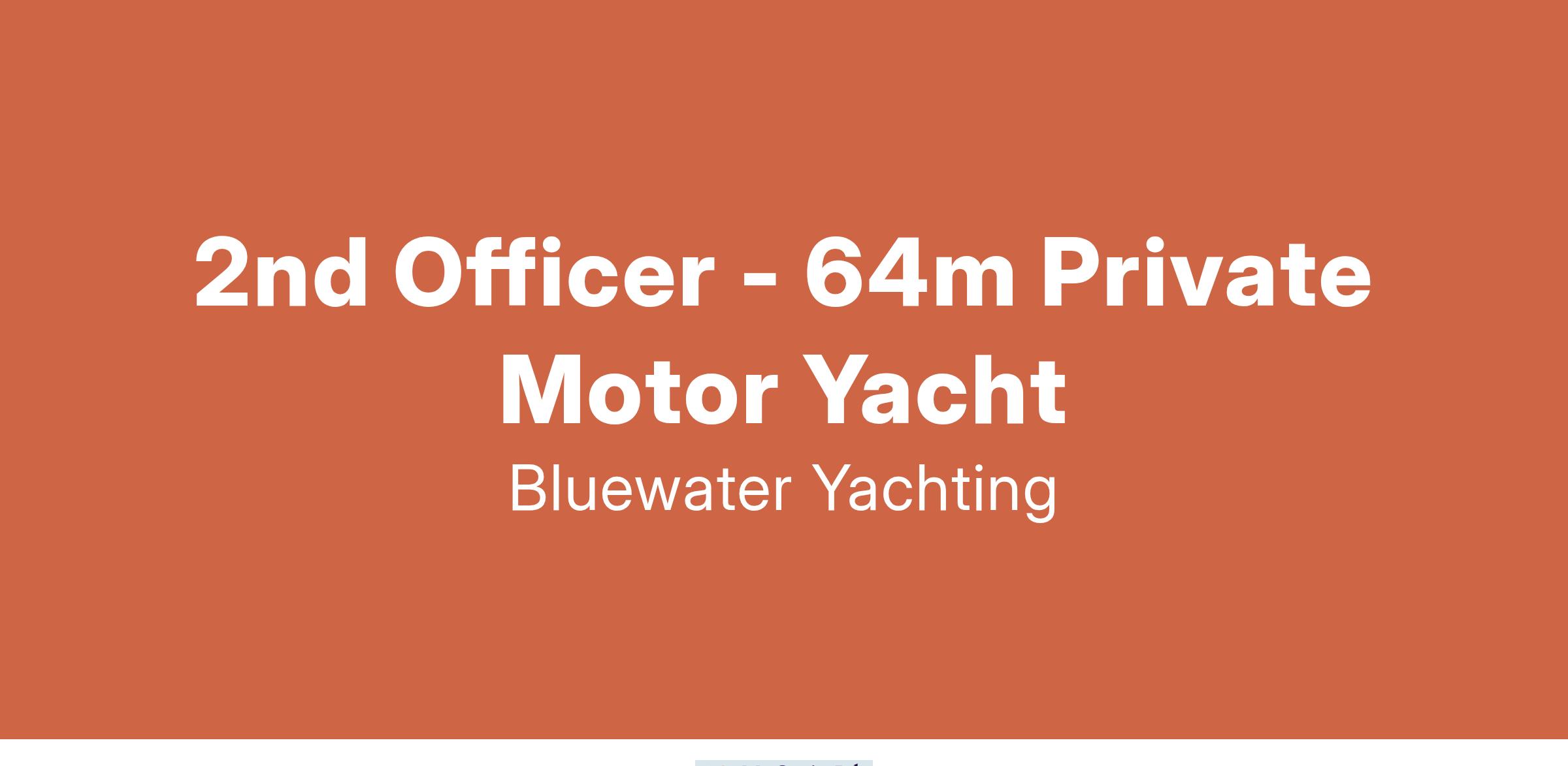 New opportunity for a Second Officer on this single season 64-meter motor yacht based in the Mediterranean!
