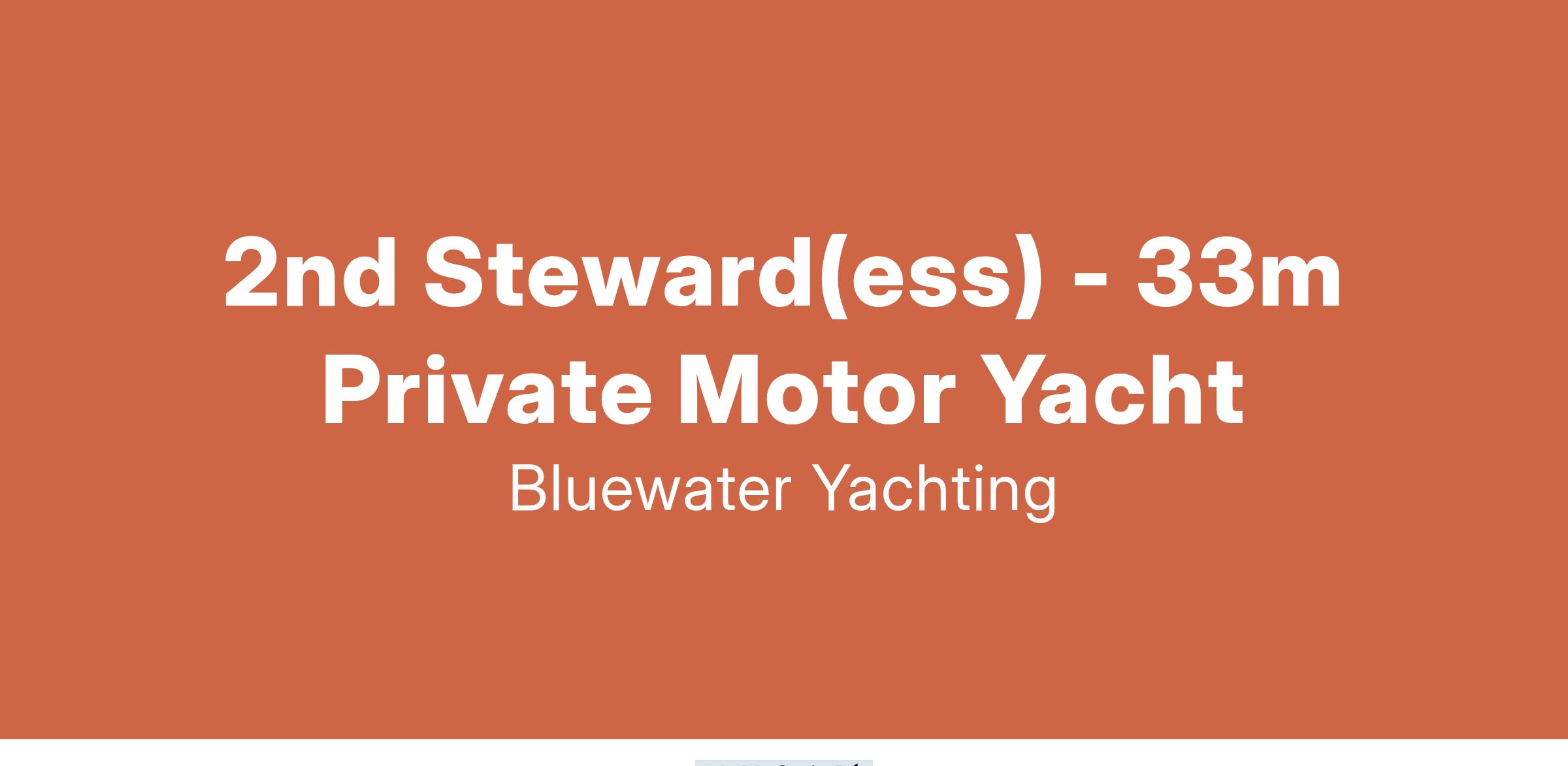 Seeking an experienced Second Stewardess for a new-build 33-meter private motor yacht based in Spain.