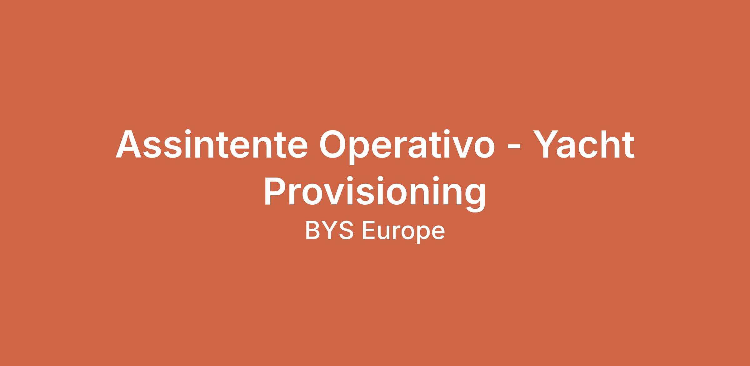 BYS Europe, azienda specializzata in Yacht Support, Agency Services & Provisioning , ricerca un Assistente Operativo per il Provisioning Department da inserire presso la sede operativa di Arzachena per la stagione estiva.
