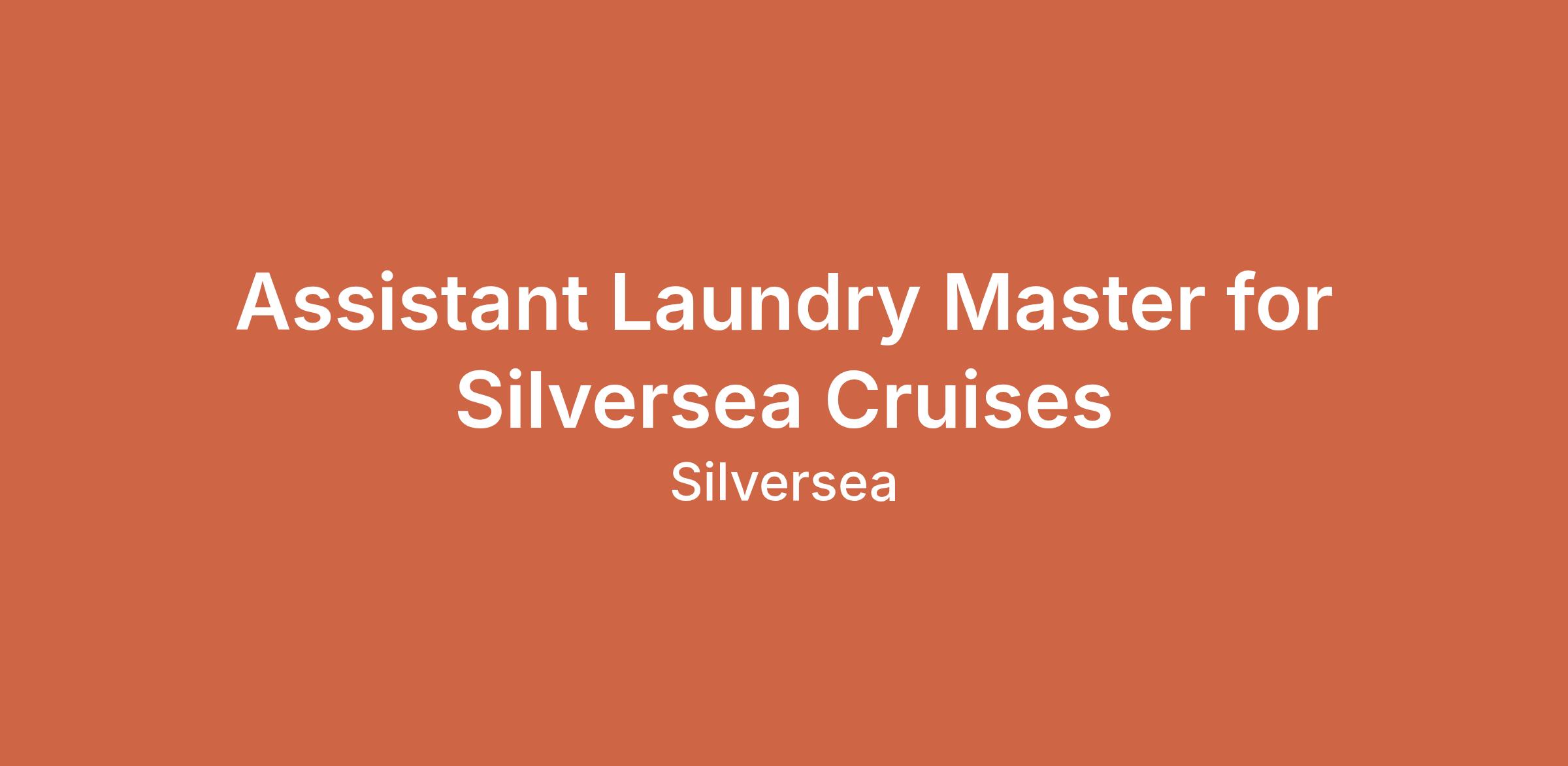 V.Ships Leisure is looking for Assistant Laundry Master on behalf of Silversea Cruises. Responsible to deliver a high quality, efficient and technically excellent daily laundry operation in accordance with Company Policies and strictly upholding any Public Health standards and towards a goal of achieving total guest satisfaction. Overseeing the entire Laundry operation onboard.