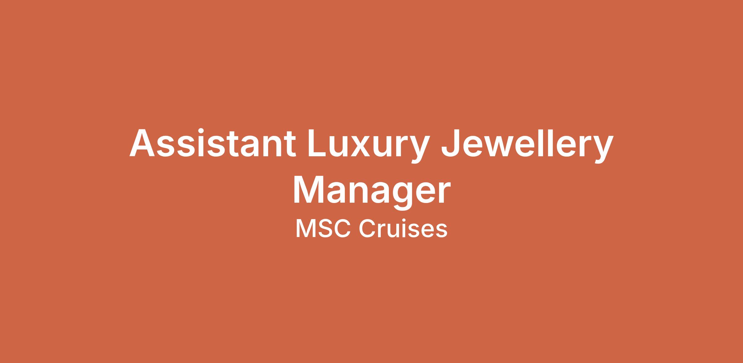 Are you passionate about luxury jewelry and creating extraordinary guest experiences? As an Assistant Luxury Jewelry Manager, you will elevate the shopping experience aboard our world-class cruise ships. You’ll work closely with a talented team to showcase exquisite jewelry and watches, combining your expertise with the charm of our onboard destinations. Join us in delivering unforgettable moments of luxury, style, and sophistication to our valued guests.