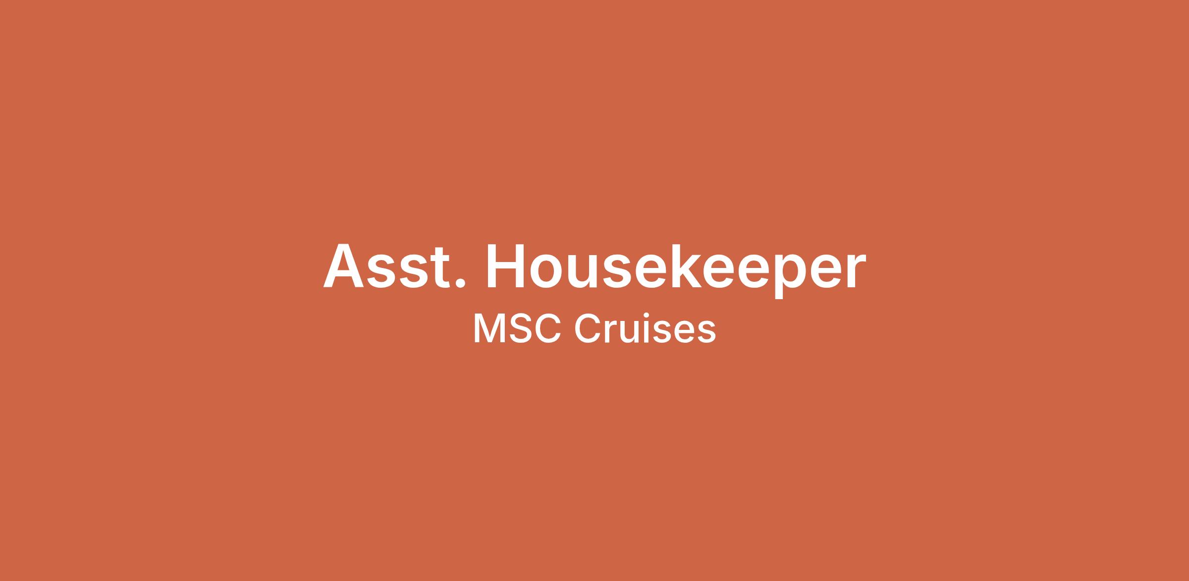 • A minimum of 3 completed contracts as Assistant Housekeeper on a luxury Cruise line.