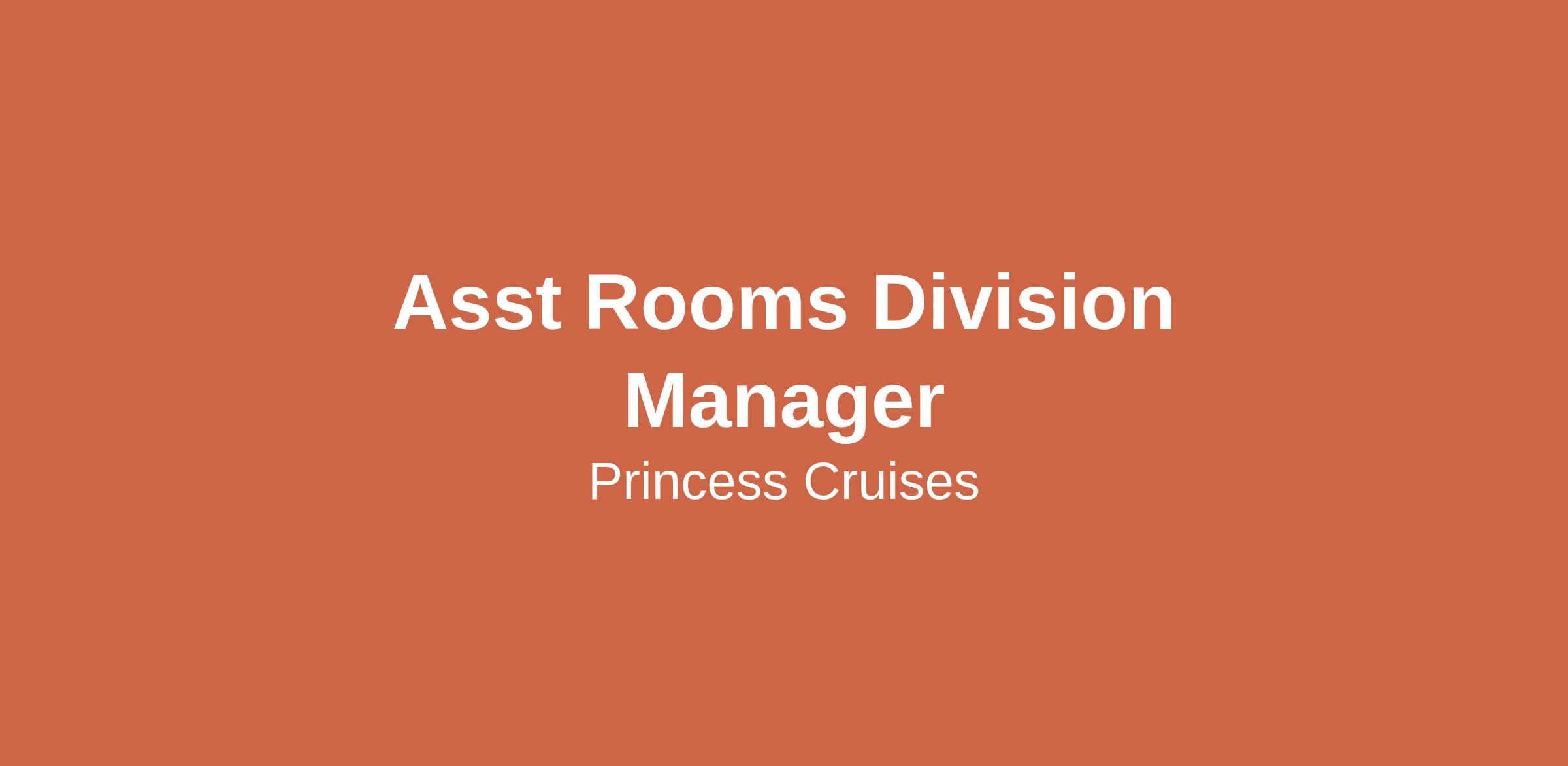 - The Asst Rooms Division Manager is responsible for providing support to the Rooms Division Manager in the operation of housekeeping services within guest and crew areas. They guarantee the deployment of Princess MedallionClass products, services and applications with a view to boosting engagement and delivering a guest-centric experience. They ensure accountability and ownership of the Service Excellence platform and philosophy within the Rooms Division Department.