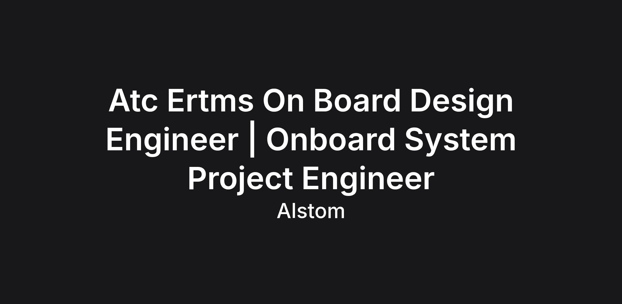 Atc Ertms On Board Design Engineer | Onboard System Project Engineer