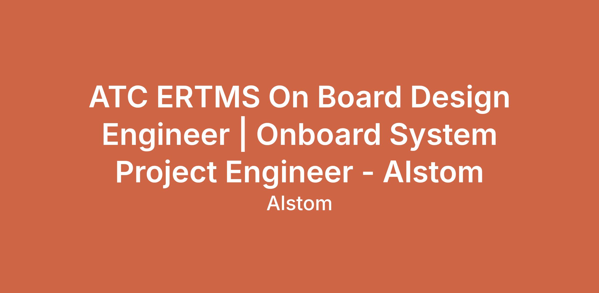 ATC ERTMS On Board Design Engineer | Onboard System Project Engineer - Alstom