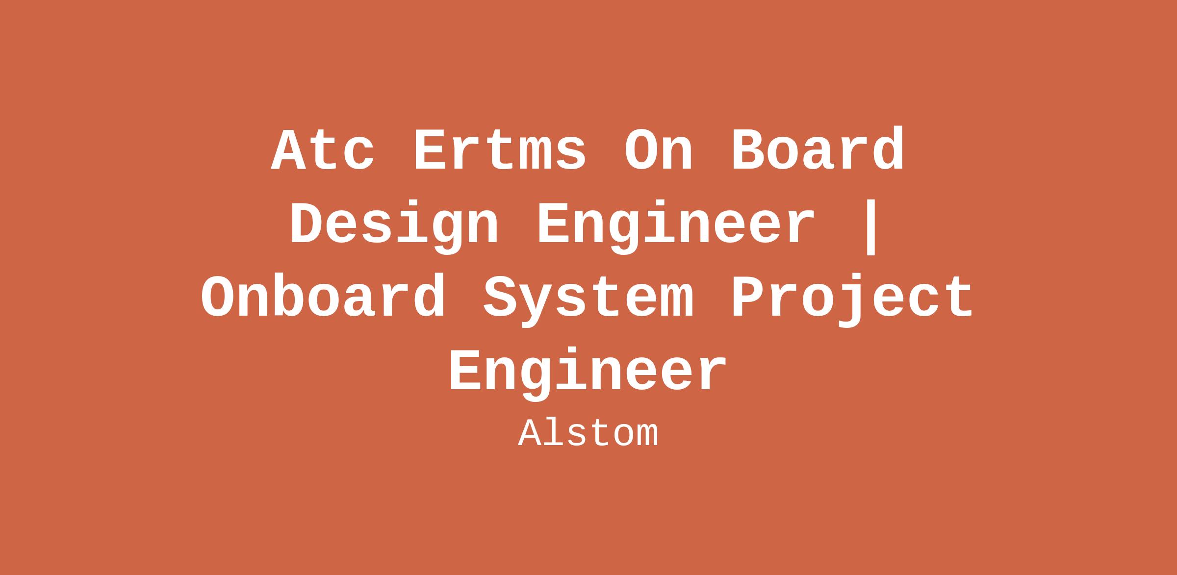 Atc Ertms On Board Design Engineer | Onboard System Project Engineer
