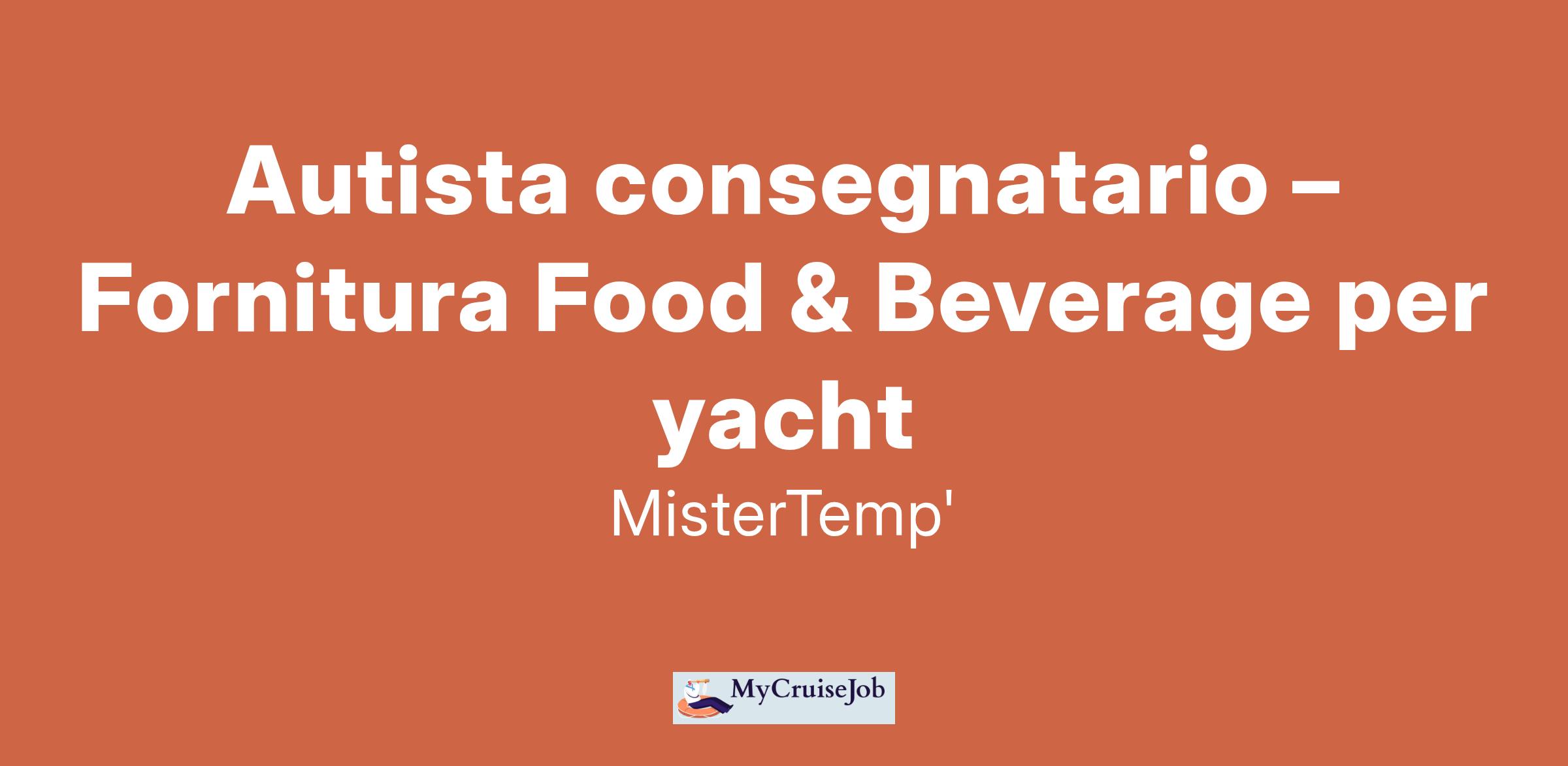 La filiale di Genova è alla ricerca di un Autista consegnatario Fornitura Food & Beverage per yacht e imbarcazioni di lusso per un'importante realtà specializzata nell approvvigionamento alimentare e nella logistica di bordo.
