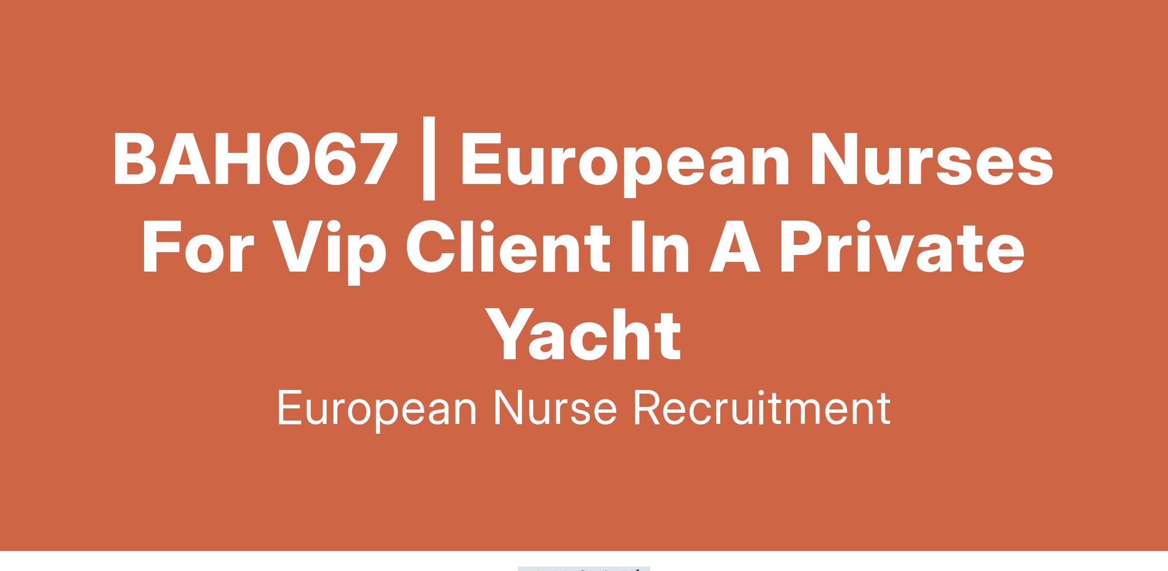 We are seeking European Nurses to provide premium healthcare for a VIP client traveling internationally aboard a luxury private yacht.