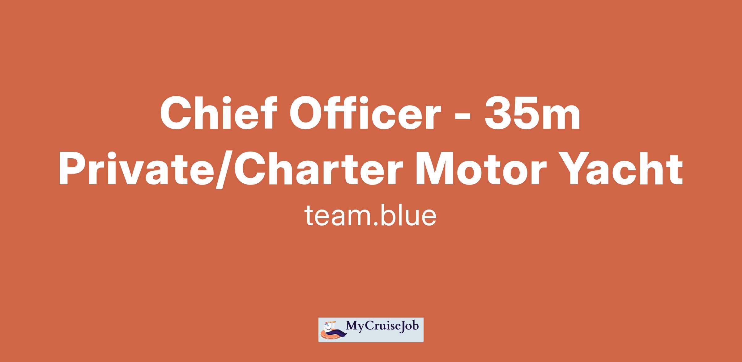 Job DescriptionWe are seeking a Chief Officer for a 35m private/charter motor yacht which is a fully equipped, family-owned vessel offering an excellent opportunity for a motivated and experienced individual.