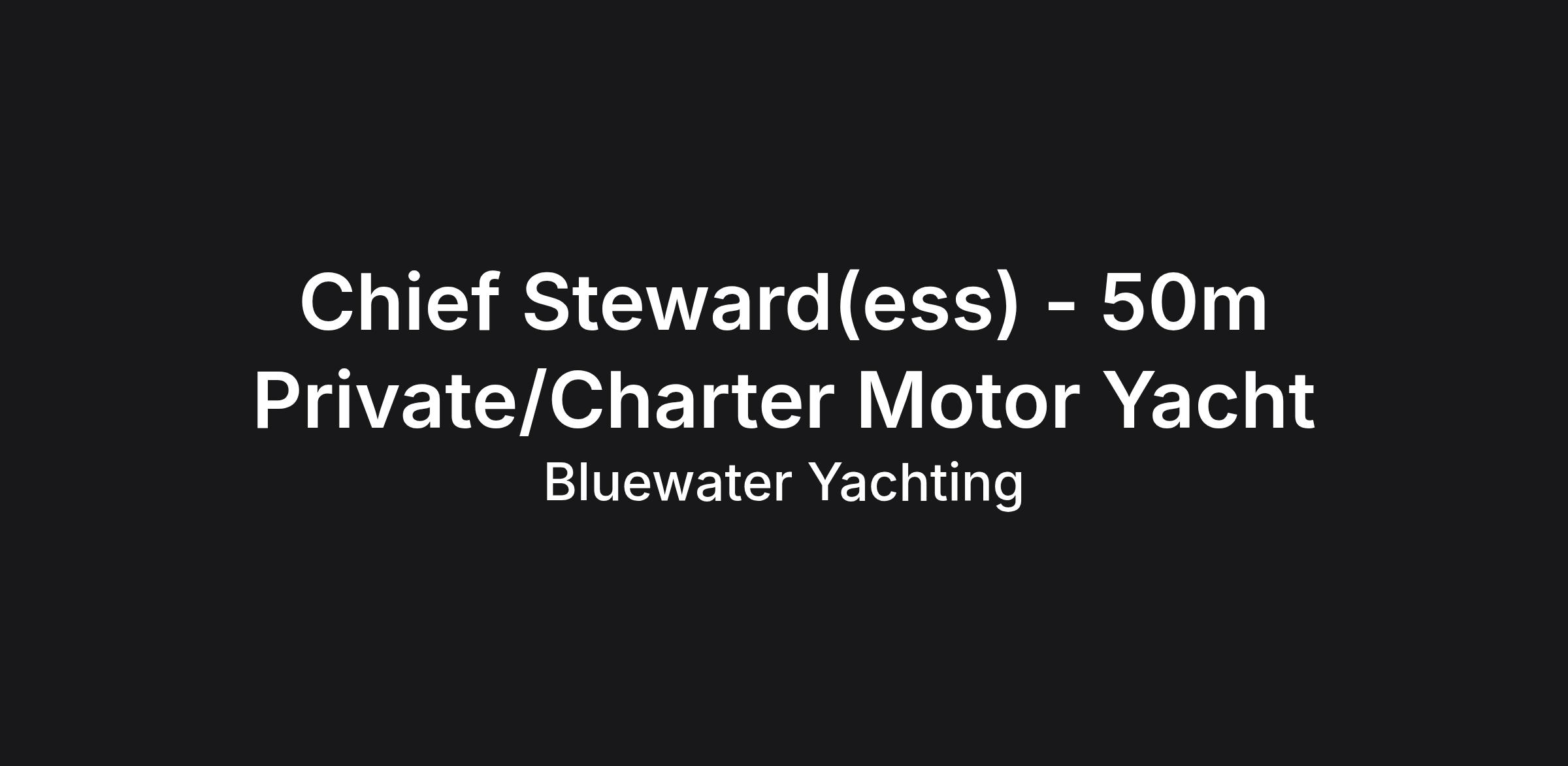 Job DescriptionOpportunity for a chief stewardess on a 50m private/charter motor yacht, currently in Italy. Permanent position starting within the next 10 days.Salary: €6000 per month plus 38 days of leave.Role & Responsibilities