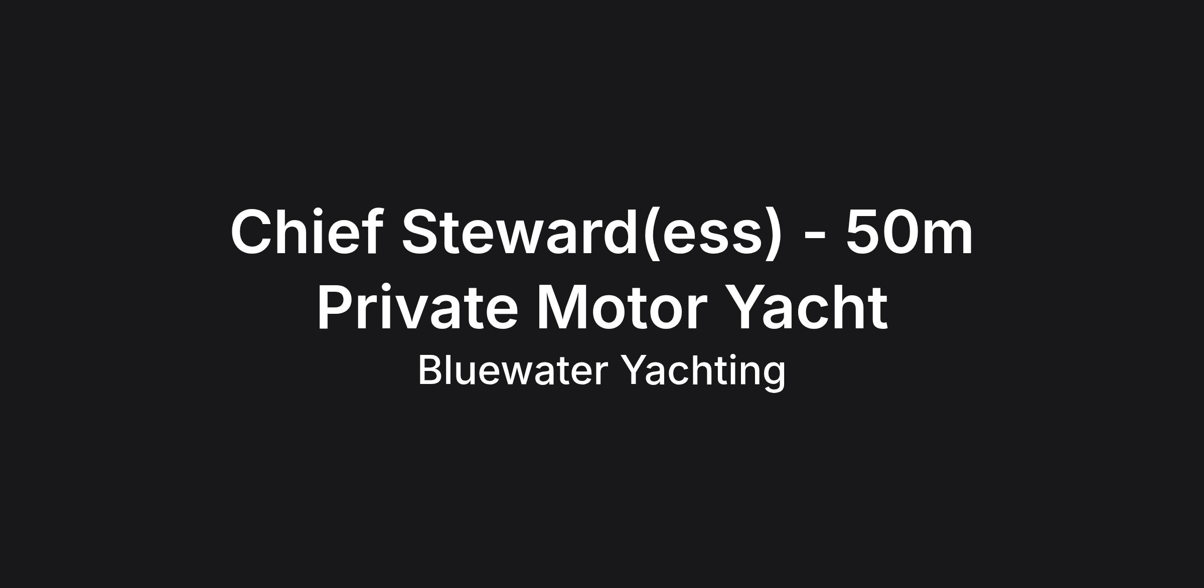 Seeking an Experienced Chief Stewardess for a 50-metre private motor yacht.