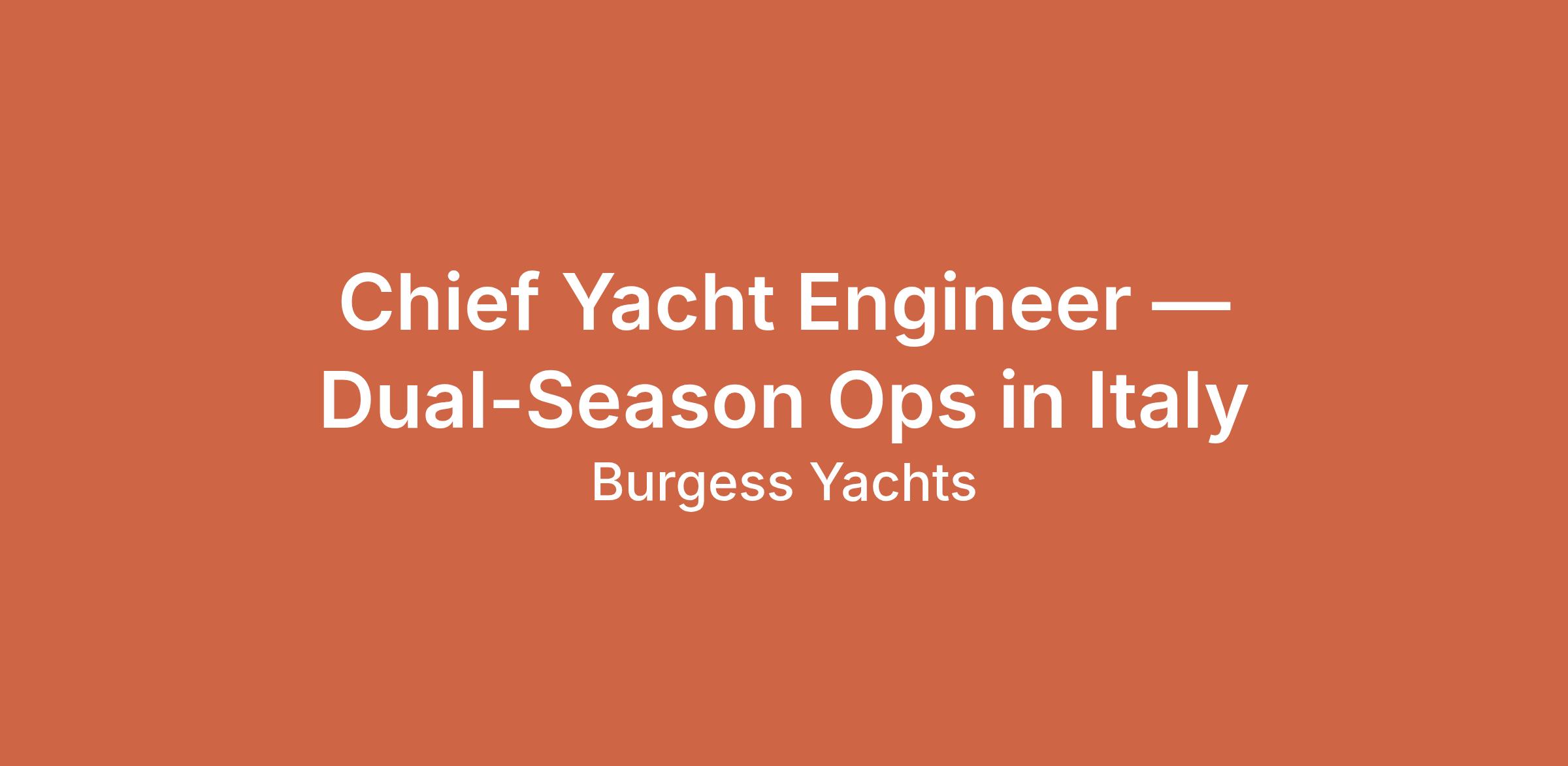 A luxury yacht company is seeking an experienced Chief Engineer for a 45m yacht in Italy. The ideal candidate will oversee daily engineering operations and address technical issues effectively. Required qualifications include Y3 certification and proven experience in a similar role on yachts. Strong problem-solving skills and teamwork abilities are essential. Attractive salary of EUR 9000 per month with a leave schedule of 3:3. This is an immediate start position that promises dual season operations.