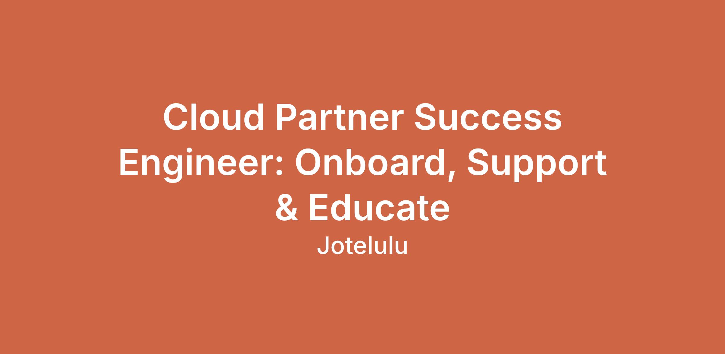 Cloud Partner Success Engineer: Onboard, Support & Educate