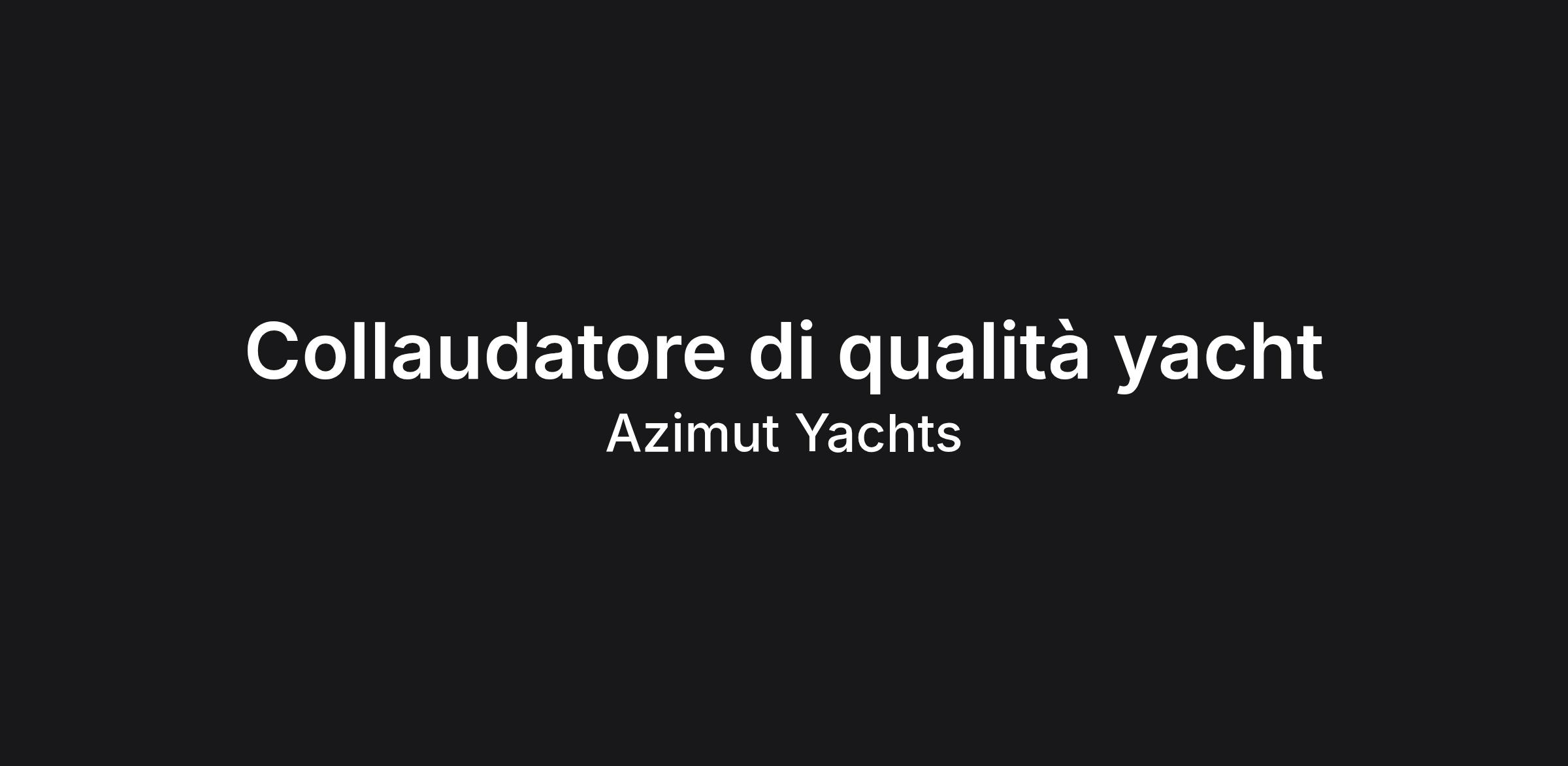 Per la sede di Savona, siamo alla ricerca di un Collaudatore di Qualità Yacht. La risorsa farà parte del team Qualità la cui funzione è garantire l'eccellenza del prodotto prima delle visite ispettive finali e della consegna all'armatore.