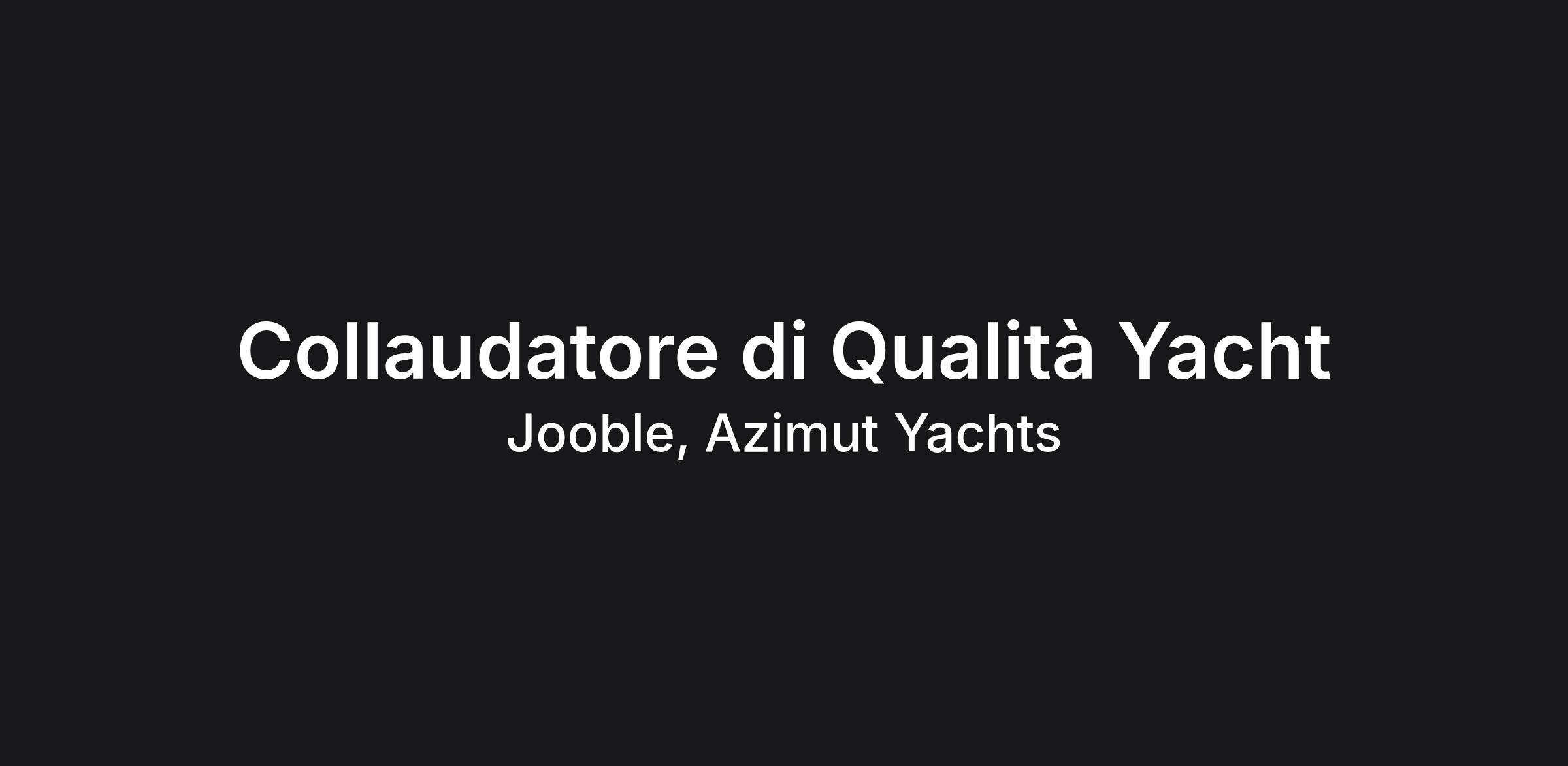 Per la sede di Savona, siamo alla ricerca di un Collaudatore di Qualità Yacht. La risorsa farà parte del team Qualità la cui funzione è garantire l'eccellenza del prodotto prima delle visite ispettive finali e della consegna all'armatore.