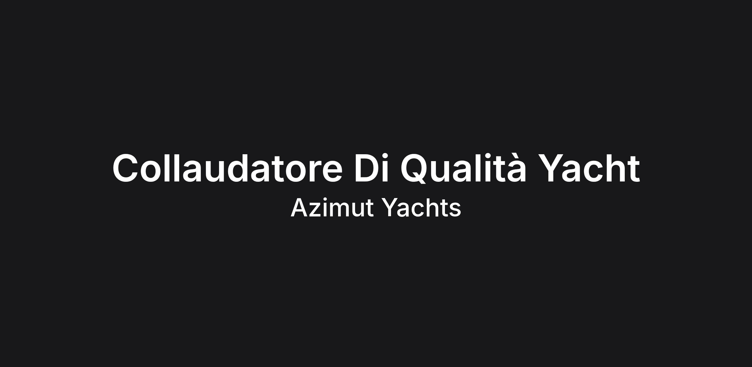 Per la sede di Savona, siamo alla ricerca di un Collaudatore di Qualità Yacht. La risorsa farà parte del team Qualità la cui funzione è garantire l'eccellenza del prodotto prima delle visite ispettive finali e della consegna all'armatore.