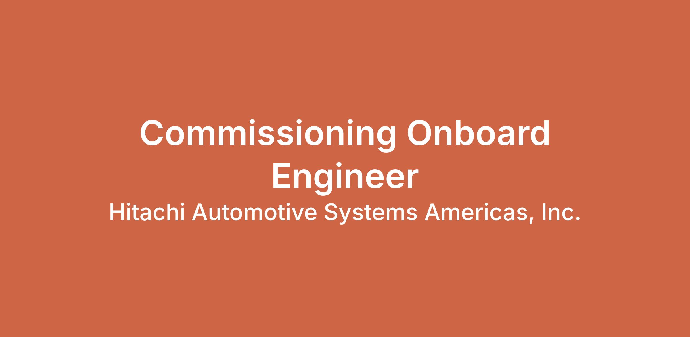 .Commissioning Onboard Engineer page is loaded## Commissioning Onboard Engineerlocations: Naples, Campania, Italytime type: Full timeposted on: Posted 9 Days Agojob requisition id: R **Location:**Naples, Campania, Italy**Job ID:**R **Date Posted:** **Company Name:**HITACHI RAIL STS S.P.A.**Profession (Job Category):**Other**Job Schedule:**Full time**Remote:**NoA career at Hitachi Rail will help create a legacy. With operations in every corner of the world, our work goes to the cutting-edge of digital transformation and technology. From the multi-cultural strength of our global organisation to the sustainable and innovative ways we work to bring people together, there’s something for everyone to get stuck into. And that’s where you come in.**Job Description:****Hitachi Rail** is looking for an enthusiastic self-motivated **Commissioning Onboard Engineer** who thrives in a fast-paced environment. The successful candidate is comfortable performing a wide range of tasks from administrative to strategic. The position is based in **Naples, Italy****.****A career at Hitachi Rail will help create a legacy. With operations in every corner of the world, our work goes to the cutting-edge of digital transformation and technology. From the multi-cultural strength of our global organisation to the sustainable and innovative ways we work to bring people together, there’s something for everyone to get stuck into. And that’s where you come in.****Accountabilities*** Commissioning technician for the various on-board signalling systems ERTMS, SCMT and SSC supplied by Hitachi Rail STS. Customer assistance and support during line trials and integration tests.* Ability to manage all installation and commissioning activities of various projects.**Required Skills/Knowledge*** At least 2/3 years' experience on Hitachi Rail STS on-board signalling systems (ERTMS/SCMT/SSC)* Office package (outlook, work, excel, etc.), editing software.* Knowledge of electrical and topographical diagrams of the various Hitachi Rail STS (ERTMS/SCMT/SSC) signalling systems, with particular attention to signals interfacing with the train electrical system.* Knowledge of the mechanical installation drawings of the various Hitachi Rail STS (ERTMS/SCMT/SSC) signalling systems.* Use of basic instrumentation multimeter, ammeter, RSC code generator, tachometer pulse simulator, etc..* Use of basic tools for making electrical connections and wiring harnesses (including connectors) according to instructions received from engineering.* Use of software loading tools provided by Hitachi Rail STS.* Ability to locate and resolve any problems between the signalling system and the train interface that may arise during Test & Commissioning activities.* Compilation and issue of commissioning reports. Knowledge of site safety aspects.* Good communication skills.* Teamwork and Flexibility.* Adaptation to change.* Direct collaboration with other site teams.**Education/Qualification**High School diploma or degree in Electronics/Electrotechnics. **Languages**English intermediate proficiency.We thank all applicants for their interest; however, only those under consideration will be contacted. Join us at .It is our commitment at Hitachi Rail to create a diverse environment and we are proud to be an equal opportunity employer. All qualified applicants will receive consideration for employment without regard to race, color, religion, gender, gender identity or expression, sexual orientation, national origin, genetics, disability, age, or veteran status.We would be delighted if you would be one of our follower!Have a glance to our LinkedIn page#LI-MP94**.****At Hitachi Rail, there is a place for everyone.** **We welcome and value differences in background, age, gender, sexuality, family status, disability, race, nationality, ethnicity, religion, and world view.** **It is our commitment to create an inclusive environment - we are proud to be an equal opportunity employer.****We would be delighted if you would be one of our followers at**Our people love technology – and they love making a difference. They have a passion for finding new solutions and working with brilliant colleagues. Every day they dedicate themselves to a huge range of exciting projects, contributing to the Hitachi vision around the globe.From engineering new sustainability solutions that conserve water and energy to creating the infrastructure for the smart cities of tomorrow, there’s no challenge too great for our pioneers. And there’s no shortage of opportunities for you to make a difference.Come and experience the dynamic, collaborative and creative environments where your ideas are welcome and new discoveries are waiting. To help you grow to your full potential, we strive to support our employees in their career aspirations and promote the freedom to explore new horizons.