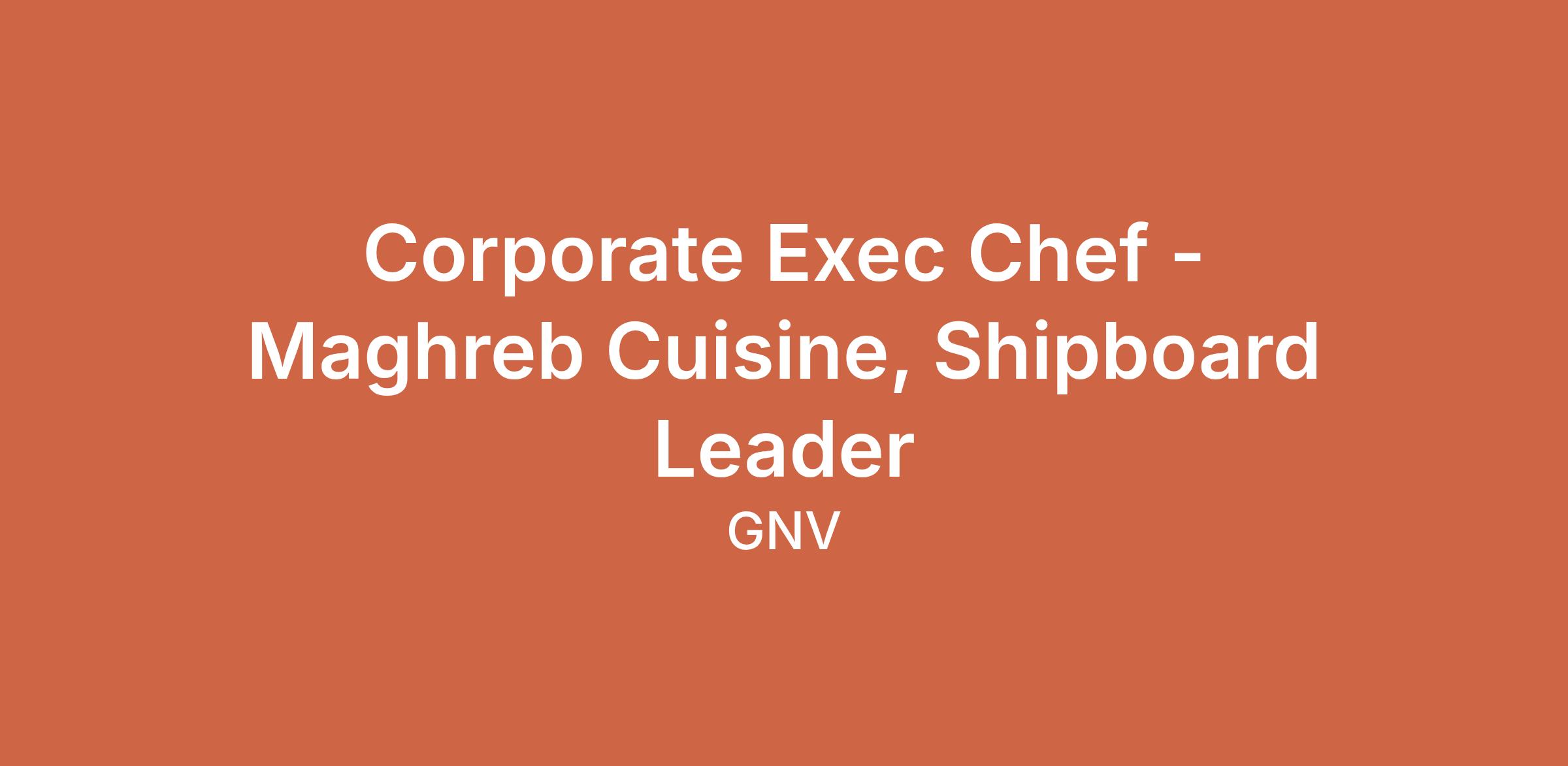 Corporate Exec Chef - Maghreb Cuisine, Shipboard Leader