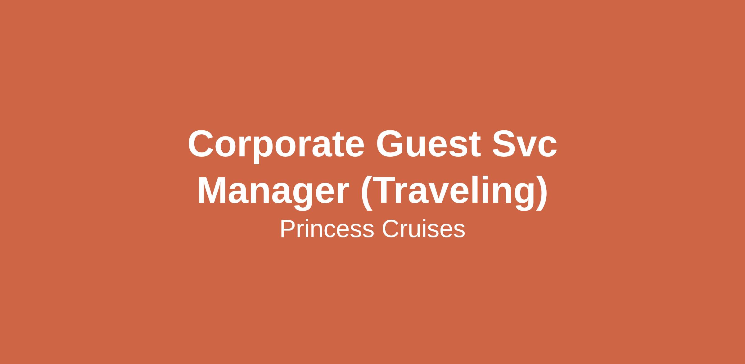 Corporate Guest Svc Manager (Traveling)
