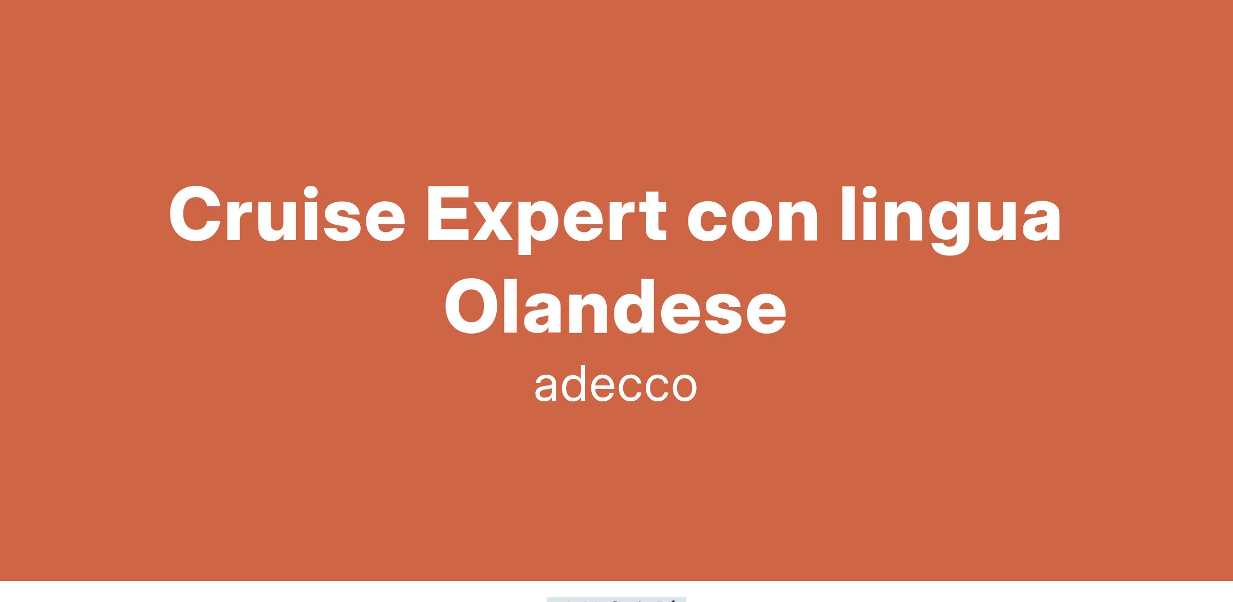 Ami il contatto con le persone e hai buone doti comunicative? Possiedi ottime competenze nell'utilizzo del computer? Stiamo cercando proprio te! Selezioniamo per importante azienda multinazionale del settore turistico un/una operatore/trice Contact Center. RESPONSABILITA'' - Consulenza telefonica a clienti e vendita servizi - Risoluzione dei problemi - Rispondere a diverse tipologie di domande - Trasferire tempestivamente tutte le informazioni ai centri decisionali opportuni dell'impresa COMPETENZE - Esperienza pregressa in attivita e settori affini - Diploma/laurea in ambito economico/linguistico/turistico - Buona conoscenza pacchetto office - Ottima conoscenza lingua inglese e olandese Sede di lavoro: GENOVA Verrai inserito in un contesto giovane e dinamico. Offriamo un contratto iniziale a tempo determinato con buone possibilita di continuita. Disponibilita oraria: Full Time