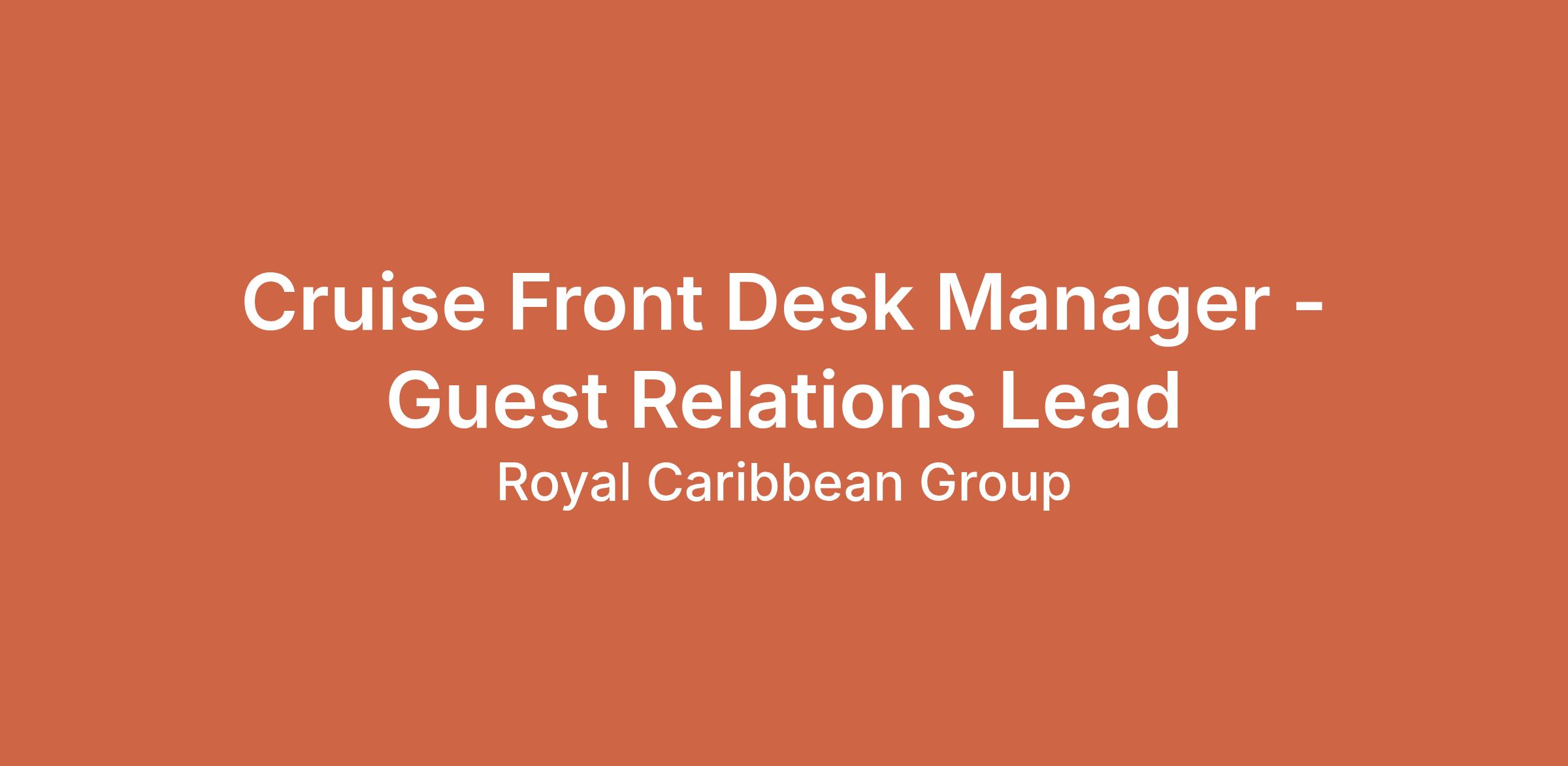 A leading cruise line company is looking for a Front Desk Manager to lead the guest interactions and ensure exceptional service. Responsibilities include overseeing the Front Desk Team, handling guest concerns, and maintaining high performance in a fast-paced environment. Candidates should have over 4 years of experience in a managerial role within hospitality, demonstrating strong leadership and organizational skills. This role requires an ability to thrive under pressure while delivering personalized service to enhance guest satisfaction.