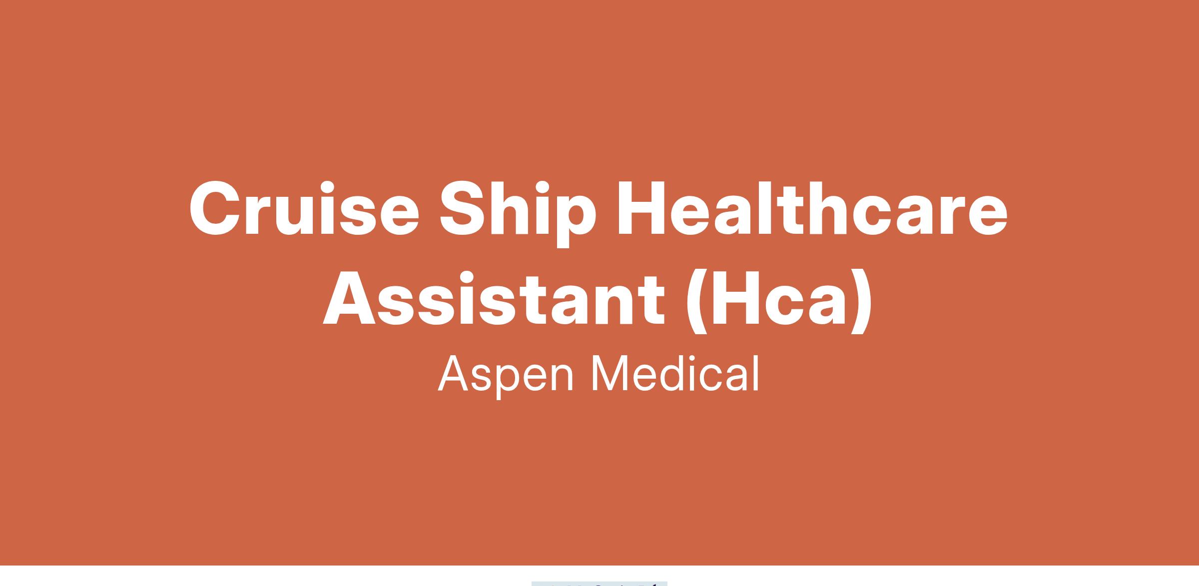 **Aspen Medical** is recruiting Healthcare Assistants to provide medical support to a market leader Cruise Line Healthcare Assistants perform various technical and non-clinical administrative tasks that support the efficient and safe operation of the medical center under the direction and supervision of the Senior Nurse.