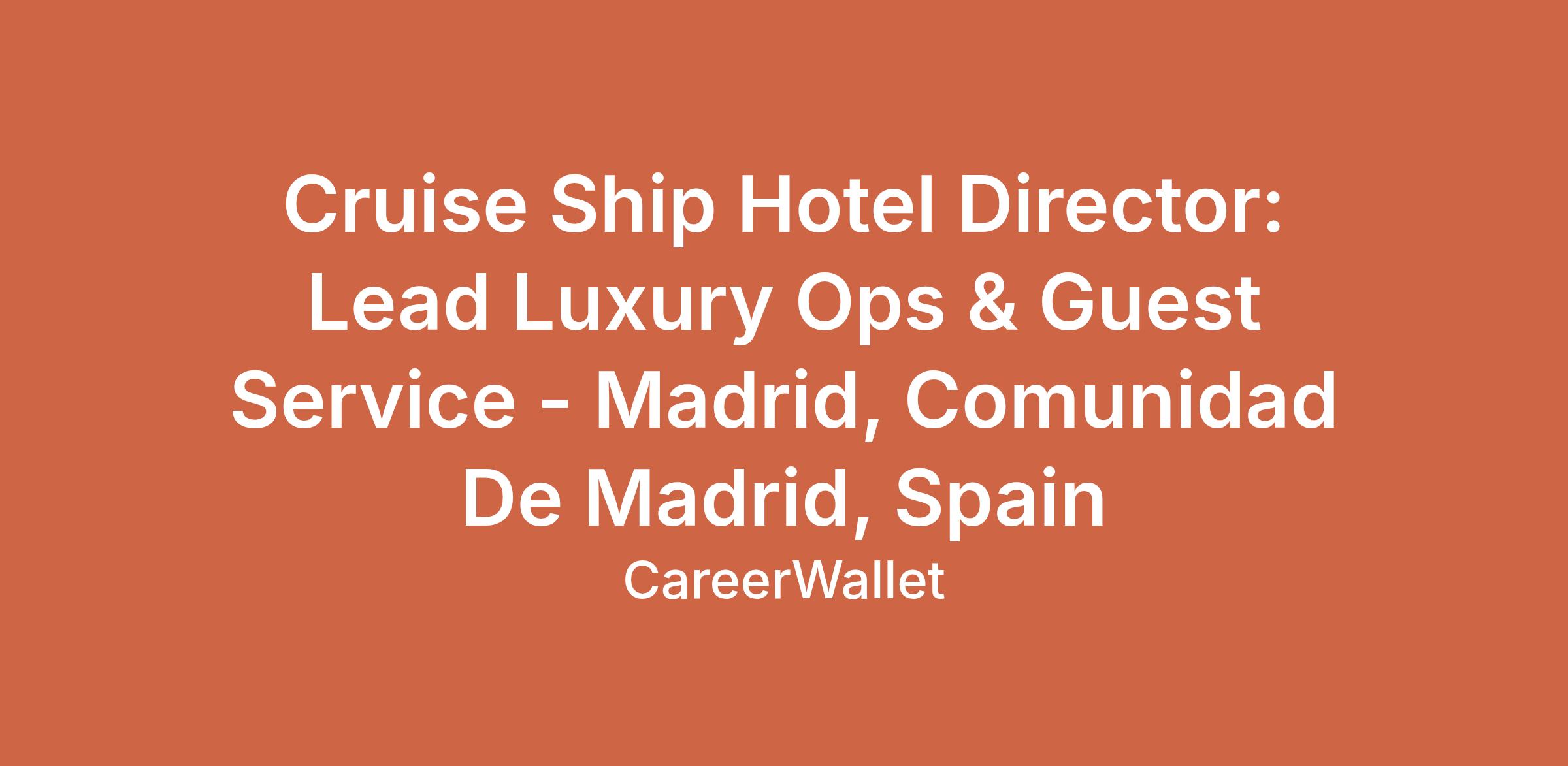 Cruise Ship Hotel Director: Lead Luxury Ops & Guest Service - Madrid, Comunidad De Madrid, Spain