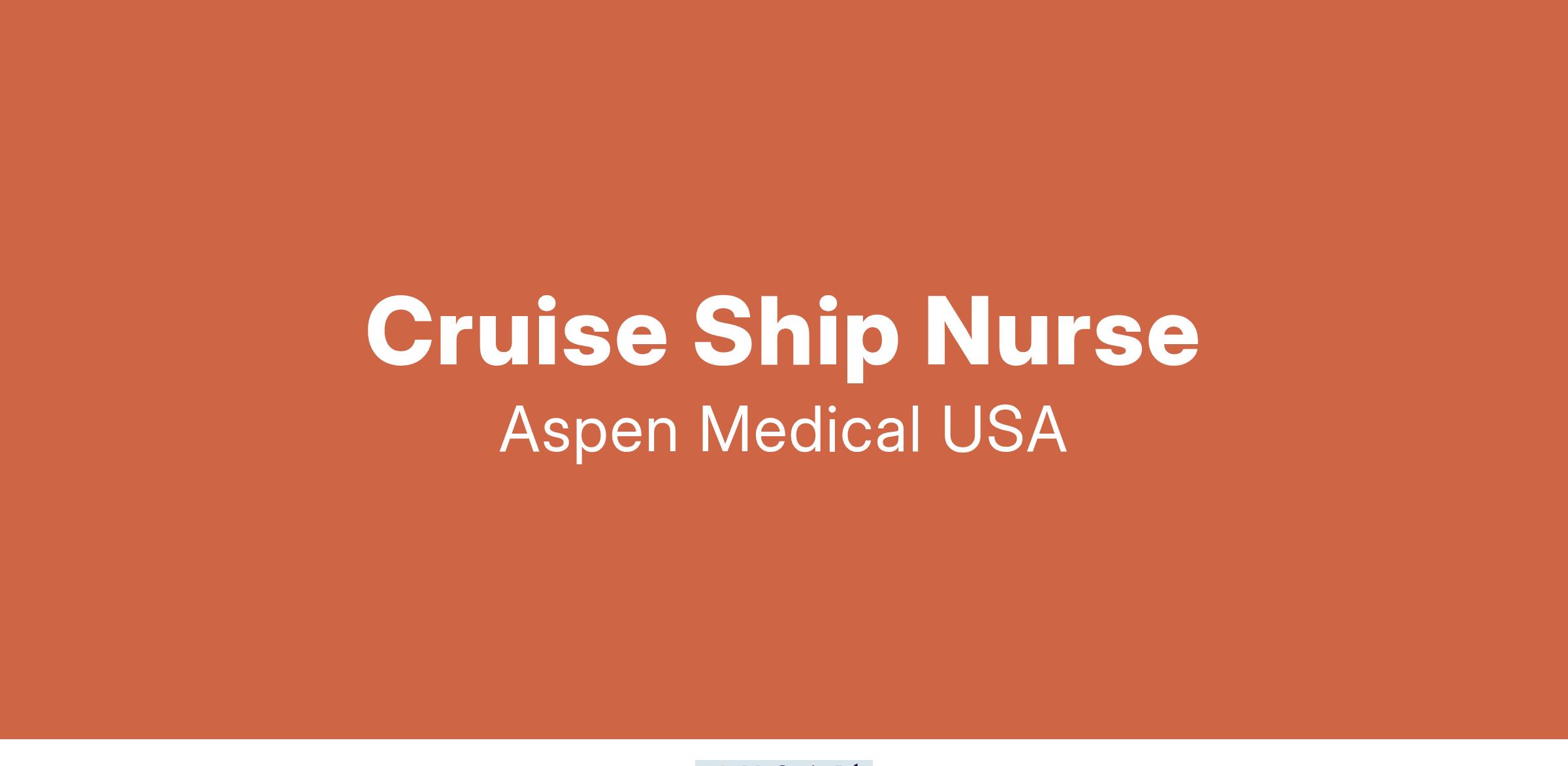 **Aspen Medical** is recruiting **Nurses** to provide medical support to a market leader Cruise Line.
