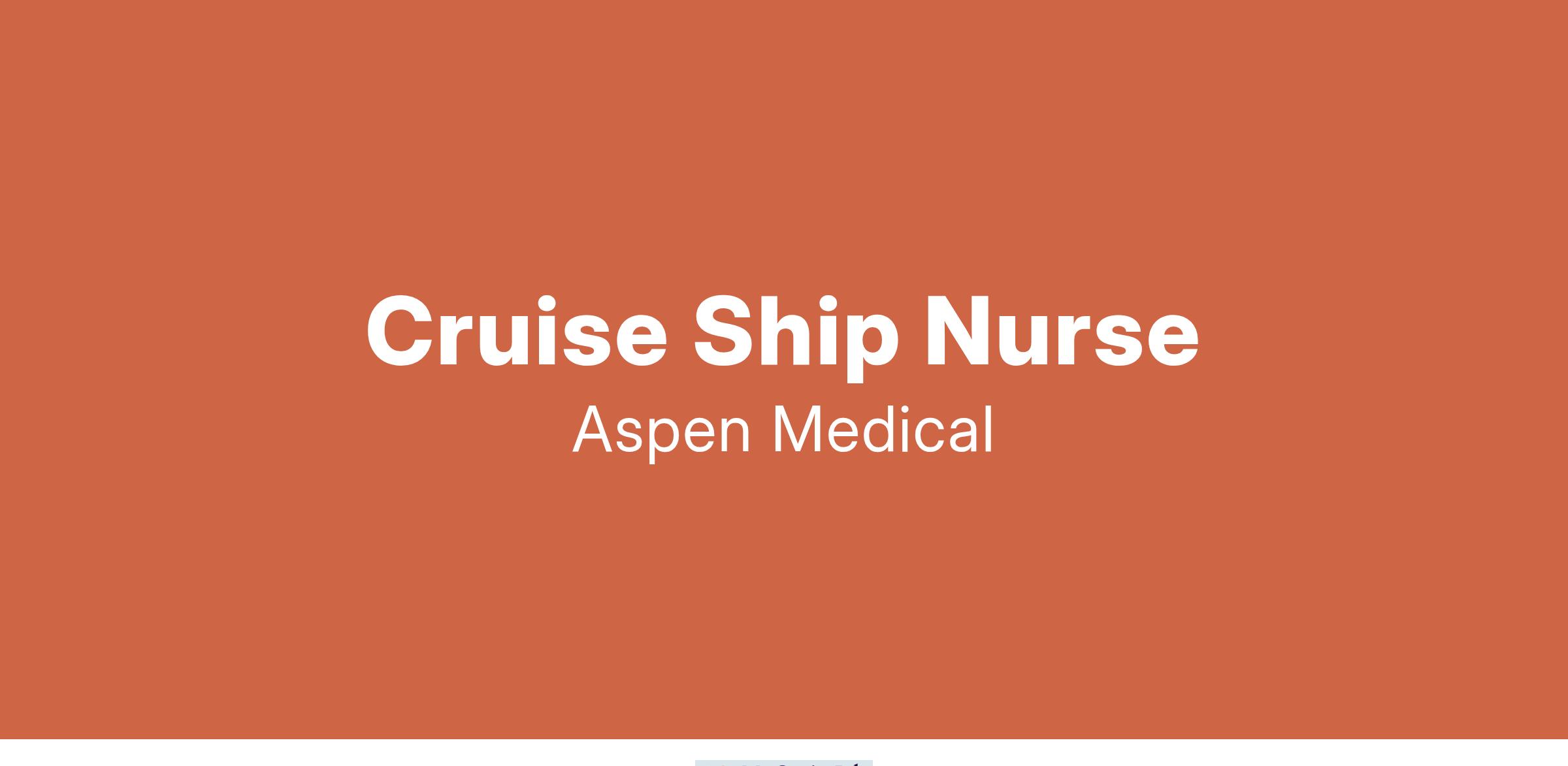 **Aspen Medical** is recruiting **Nurses** to provide medical support to a market leader Cruise Line.