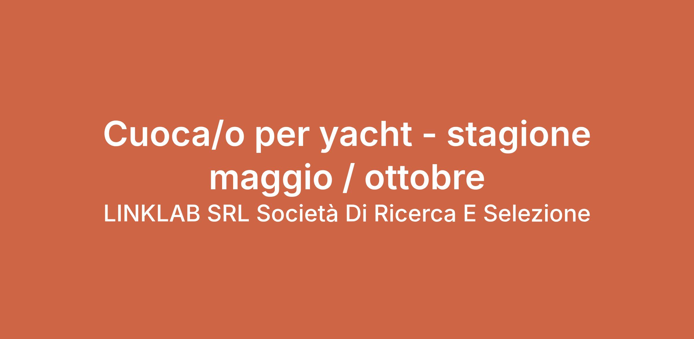 Per yacht privato, ricerchiamo cuoca/o di bordo per la stagione estiva (maggio – ottobre).
