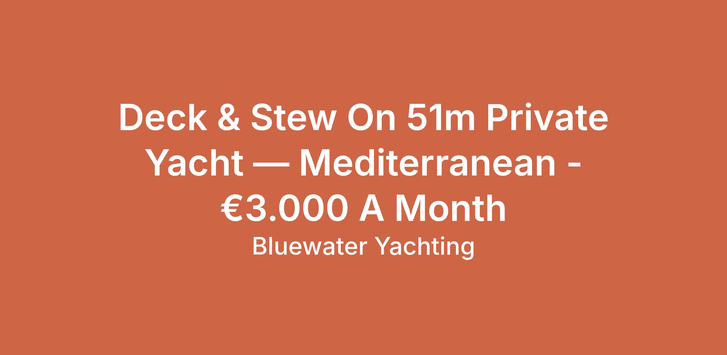 Deck & Stew On 51m Private Yacht — Mediterranean - €3.000 A Month