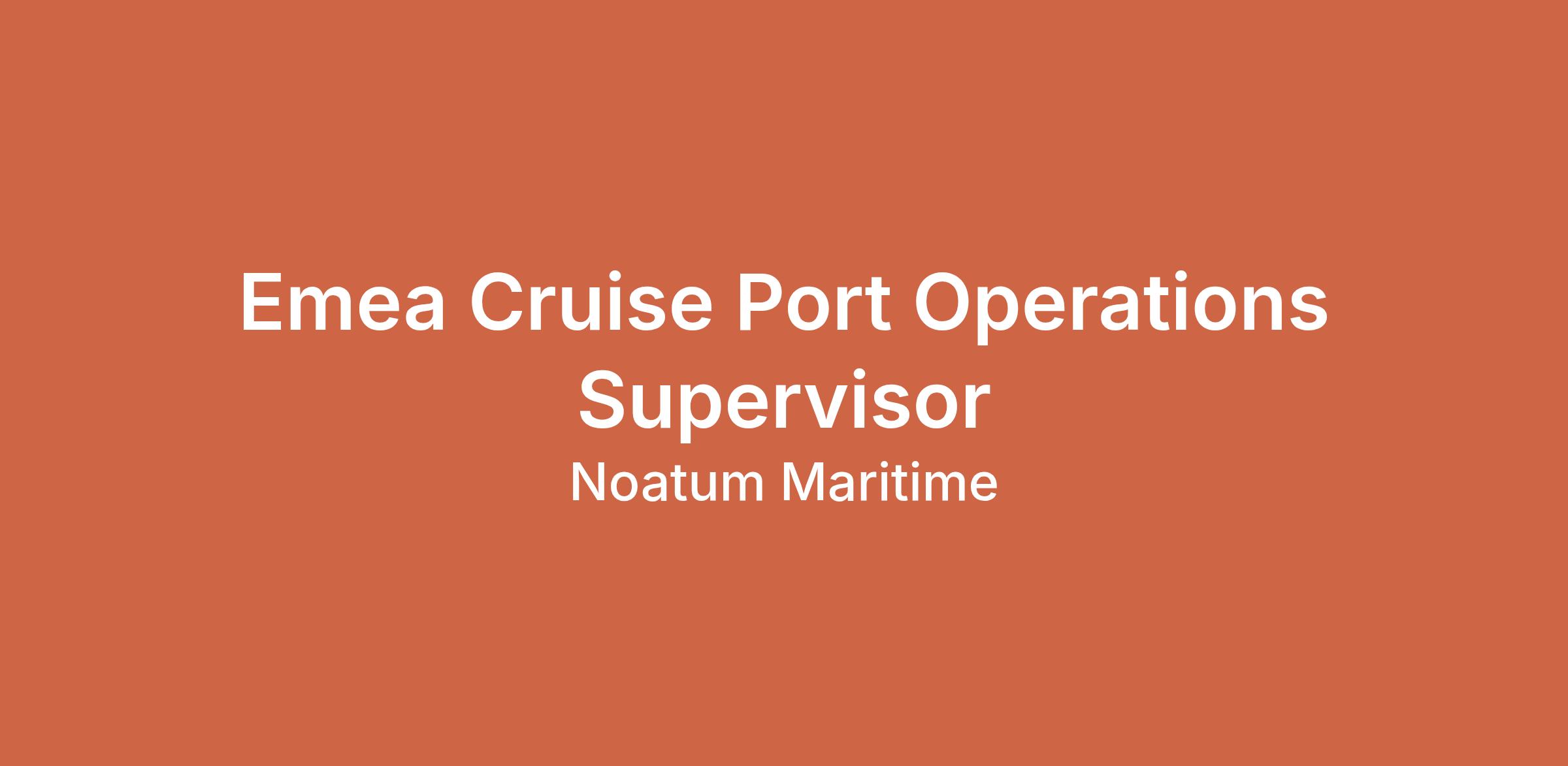 The Port Operations Supervisor EMEA - Noatum Maritime Cruise Services is responsible for optimizing operational efficiency and service quality across EMEA, contributing to the growth and consolidation of the business. The role plays a key part in driving Noatum Maritime Cruise Services' growth and ensuring seamless service delivery to the cruise lines that we represent.