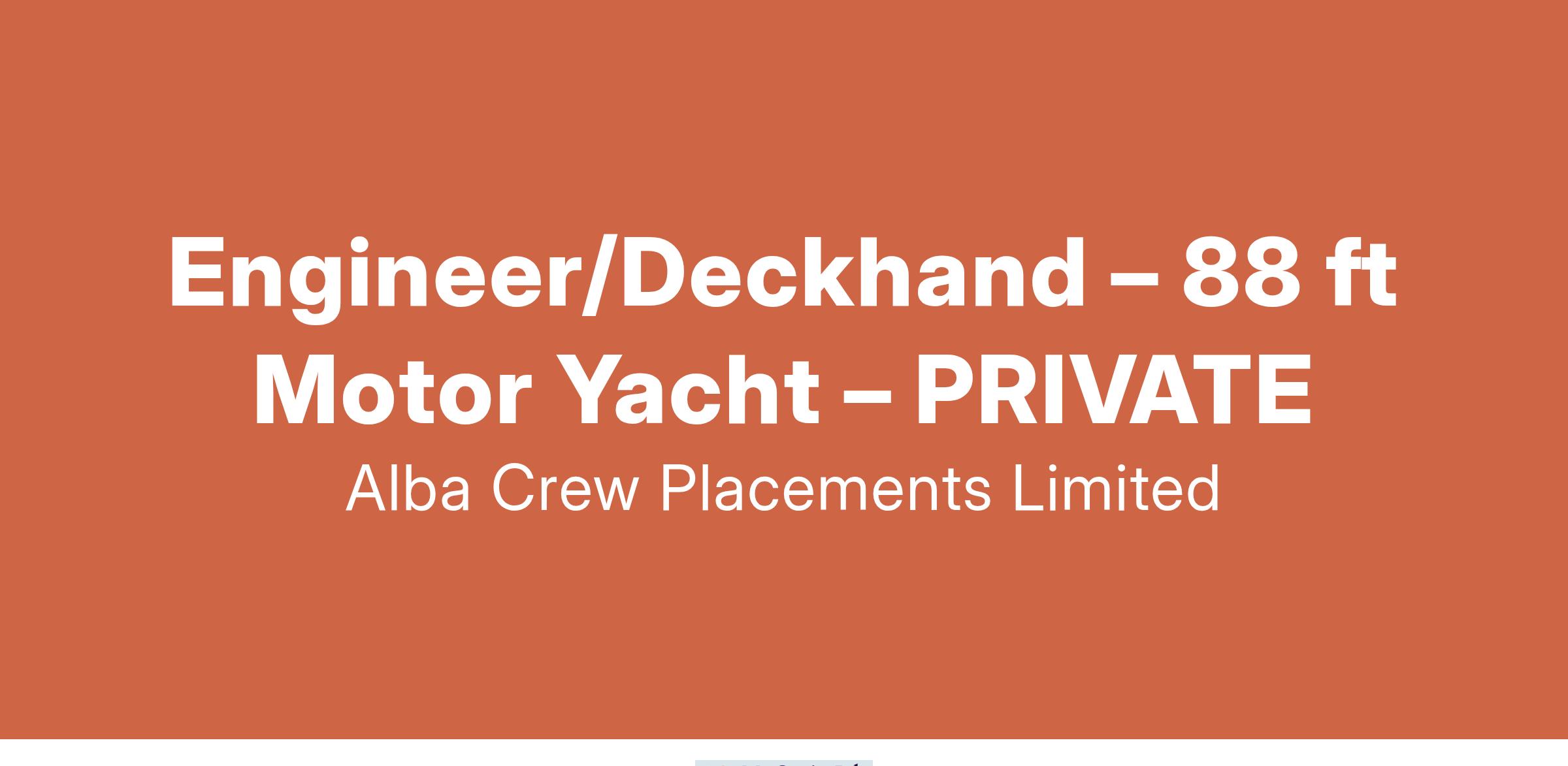 We are searching for an Engineer/Deckhand to join an 88 ft Private Motor Yacht.