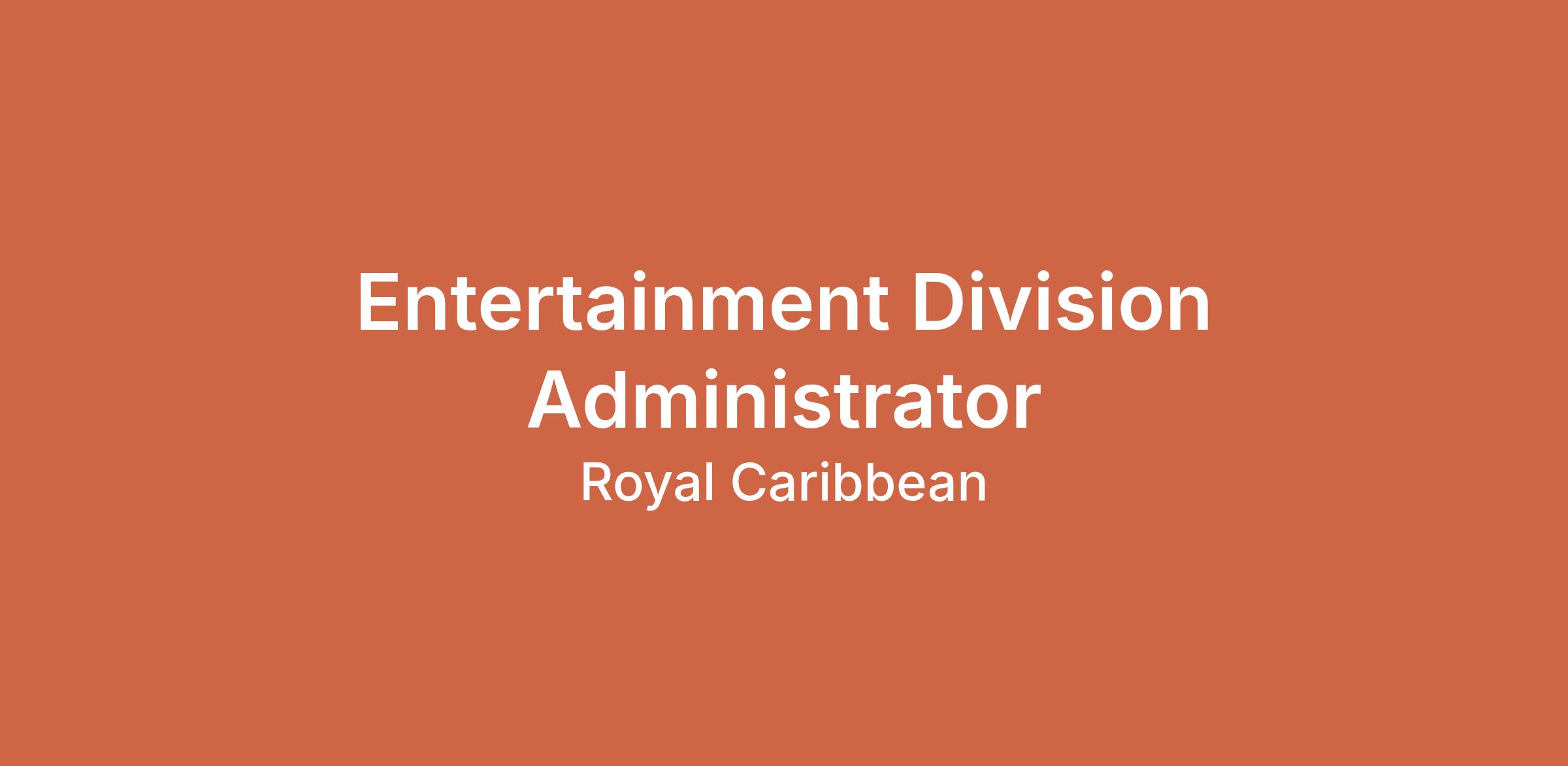 Assists the Cruise Director with administrative and clerical work. Administratively supports the entire Entertainment Division, including, but not limited to, tracking and entering training, ordering, budgeting, supplemental payments, enrichment/clergy, Make-a-Wish/World Wildlife Fund, safety meetings, berthing and more.