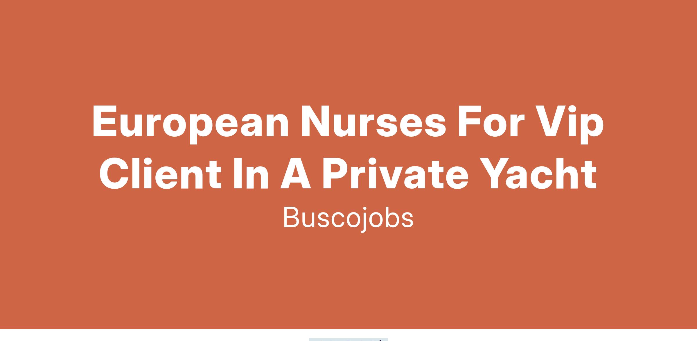Nurses to provide premium healthcare for a VIP client traveling internationally aboard a luxury private yacht.