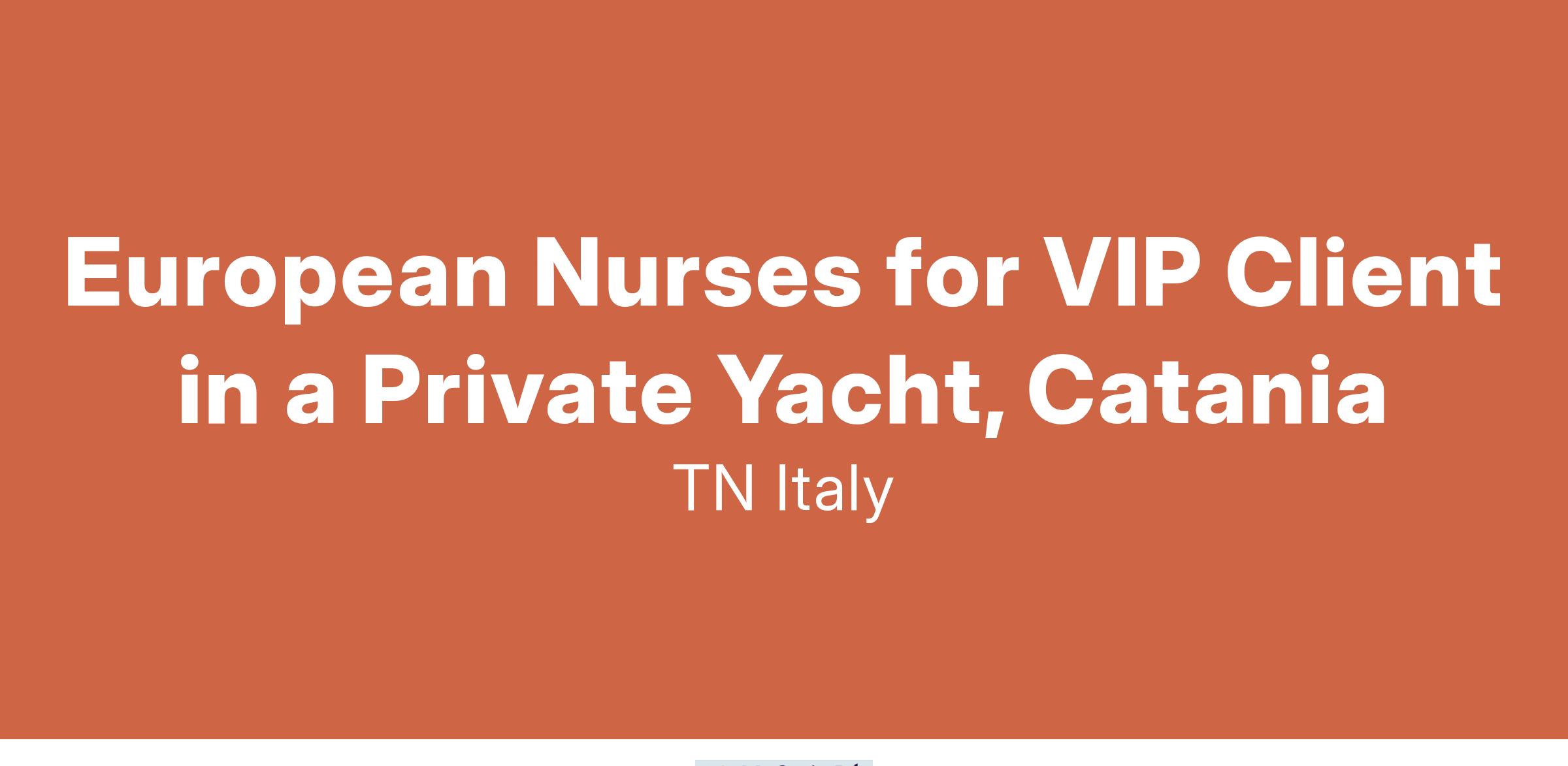 European Nurses for VIP Client in a Private Yacht, CataniaClient:European Nurse Recruitment