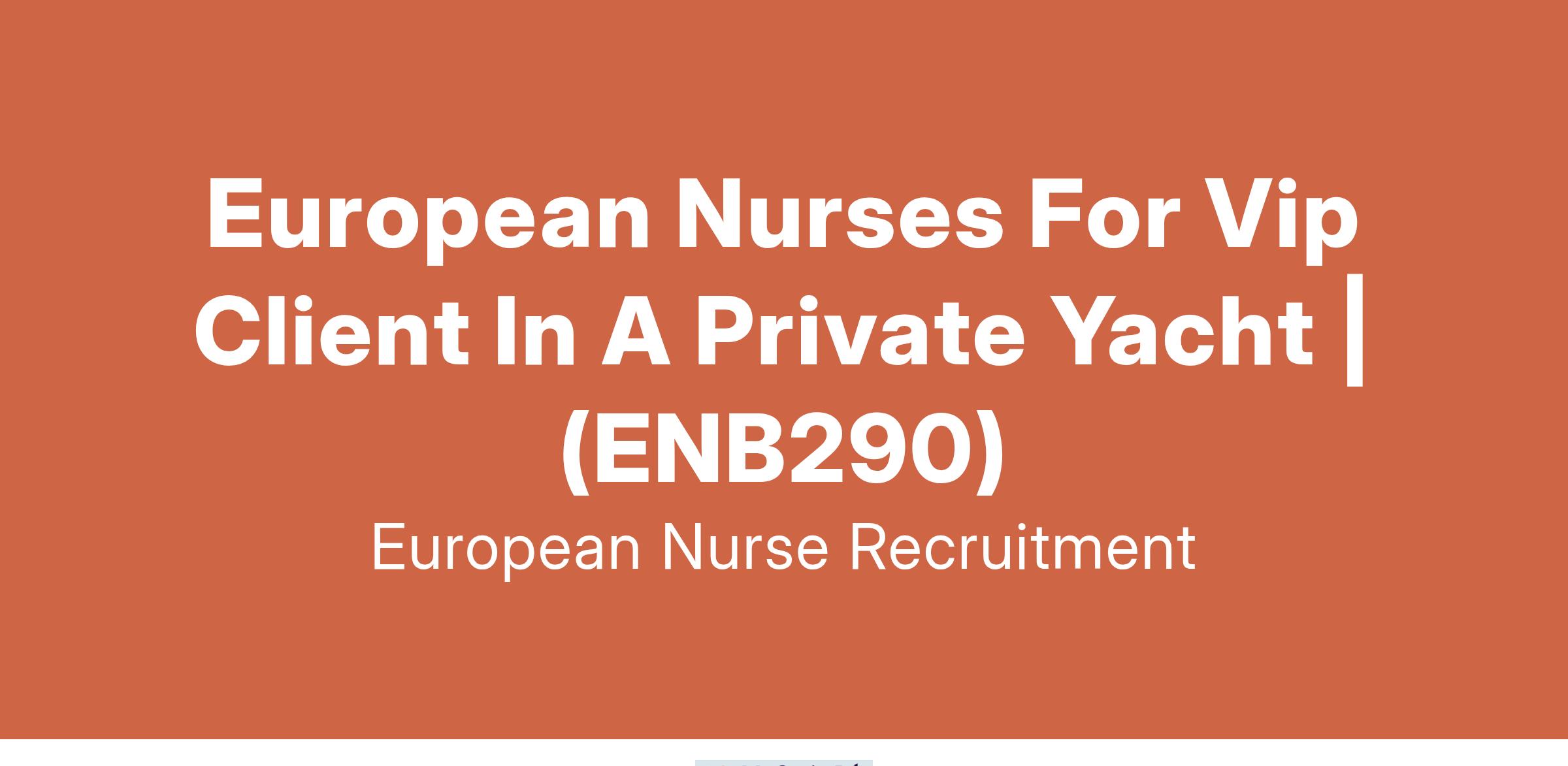 We are seeking European Nurses to provide premium healthcare for a VIP client traveling internationally aboard a luxury private yacht. This exclusive role offers a unique chance to combine your professional expertise with the excitement of exploring stunning destinations, always following the warmth and sunshine of the season.