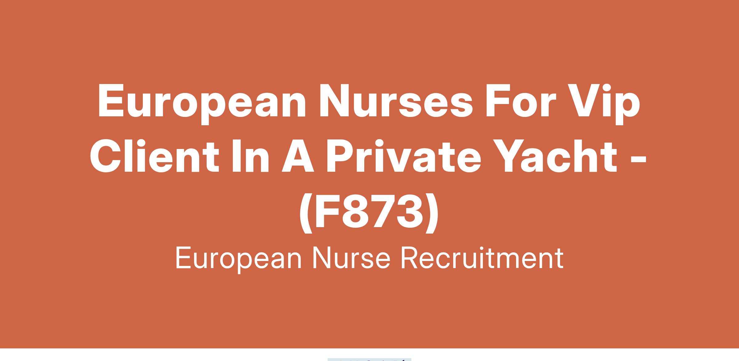 We are seeking European Nurses to provide premium healthcare for a VIP client traveling internationally aboard a luxury private yacht. This exclusive role offers a unique chance to combine your professional expertise with the excitement of exploring stunning destinations, always following the warmth and sunshine of the season.