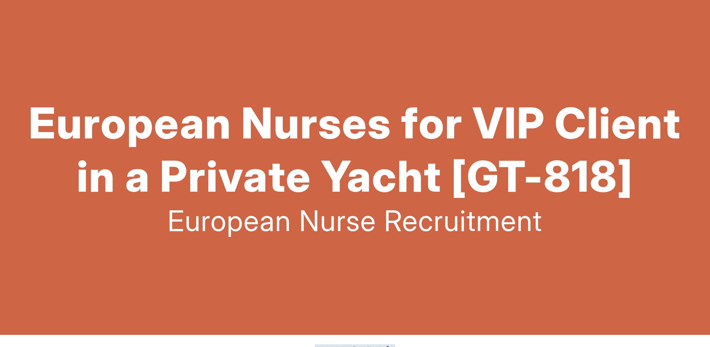 We are seeking European Nurses to provide premium healthcare for a VIP client traveling internationally aboard a luxury private yacht.