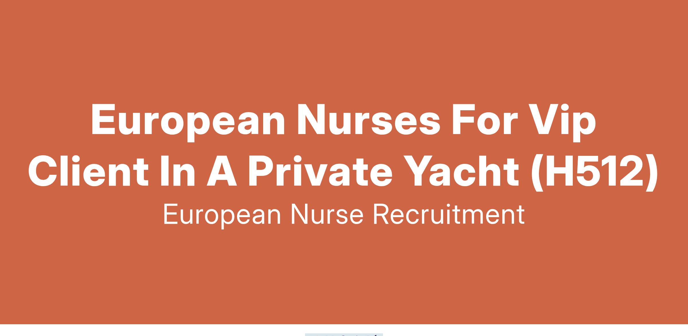 We are seeking European Nurses to provide premium healthcare for a VIP client traveling internationally aboard a luxury private yacht. This exclusive role offers a unique chance to combine your professional expertise with the excitement of exploring stunning destinations, always following the warmth and sunshine of the season. You could be traveling to breathtaking locations such as: