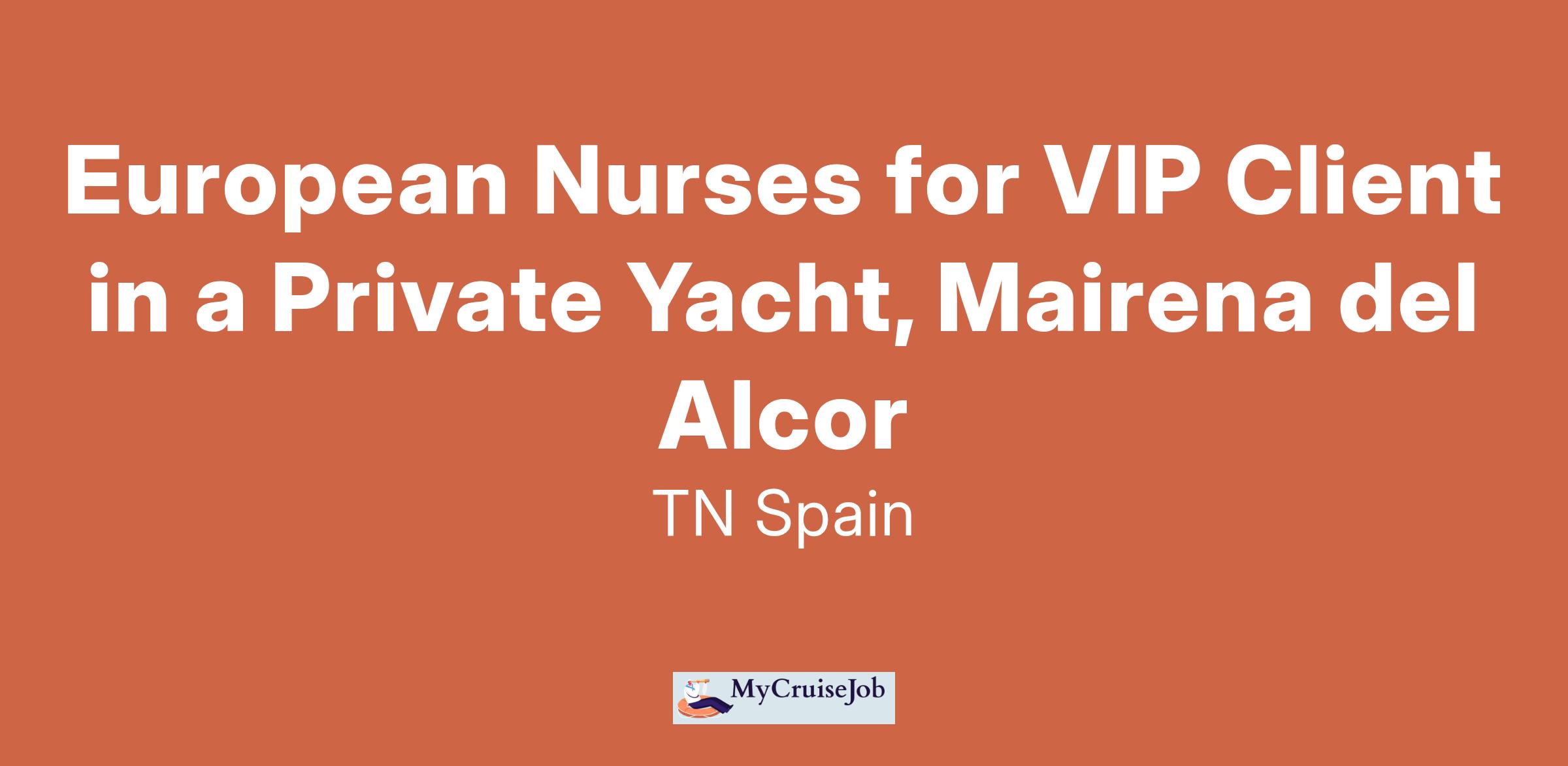 We are seeking European Nurses to provide premium healthcare for a VIP client traveling internationally aboard a luxury private yacht.