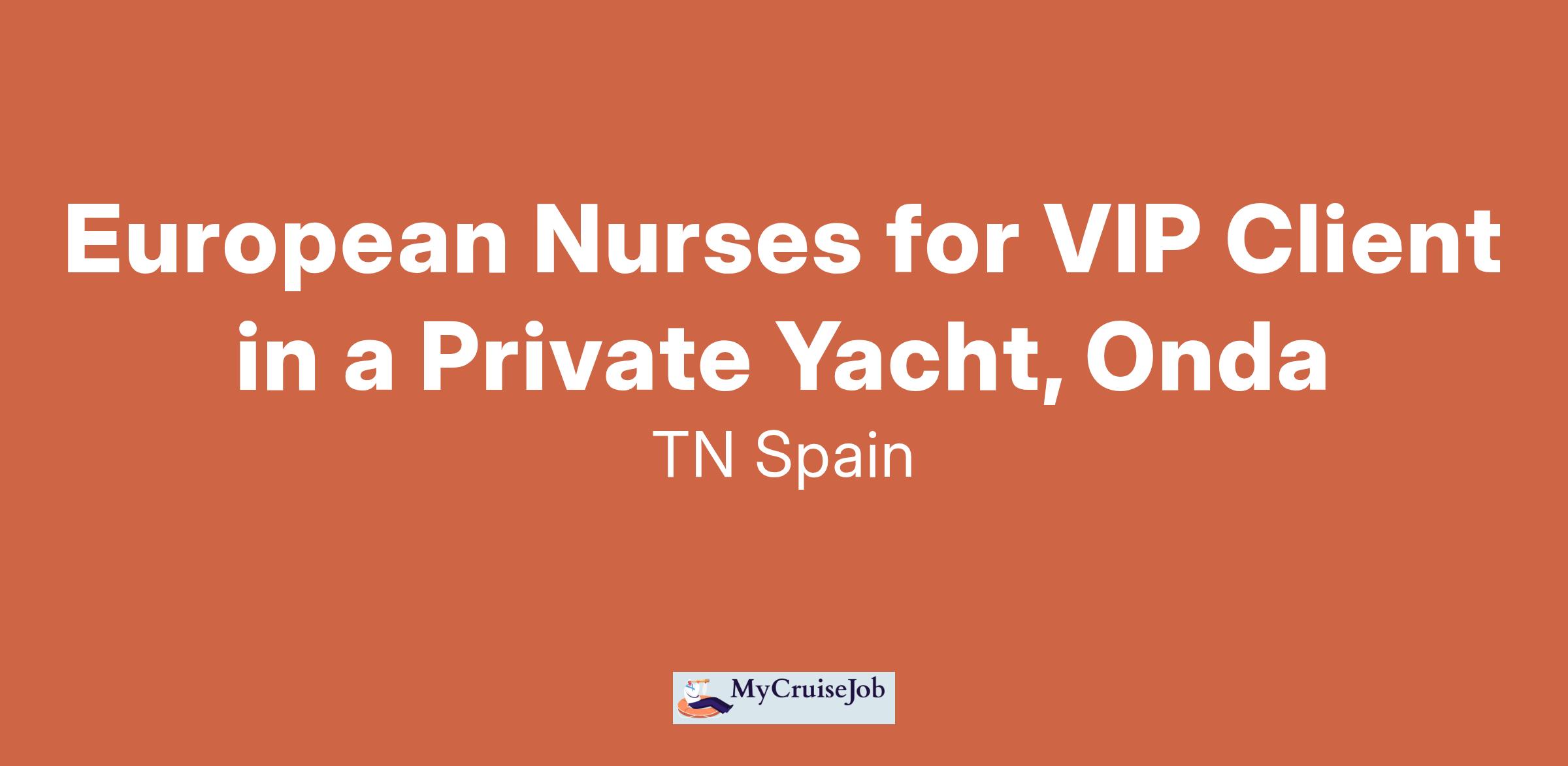 We are seeking European Nurses to provide premium healthcare for a VIP client traveling internationally aboard a luxury private yacht.