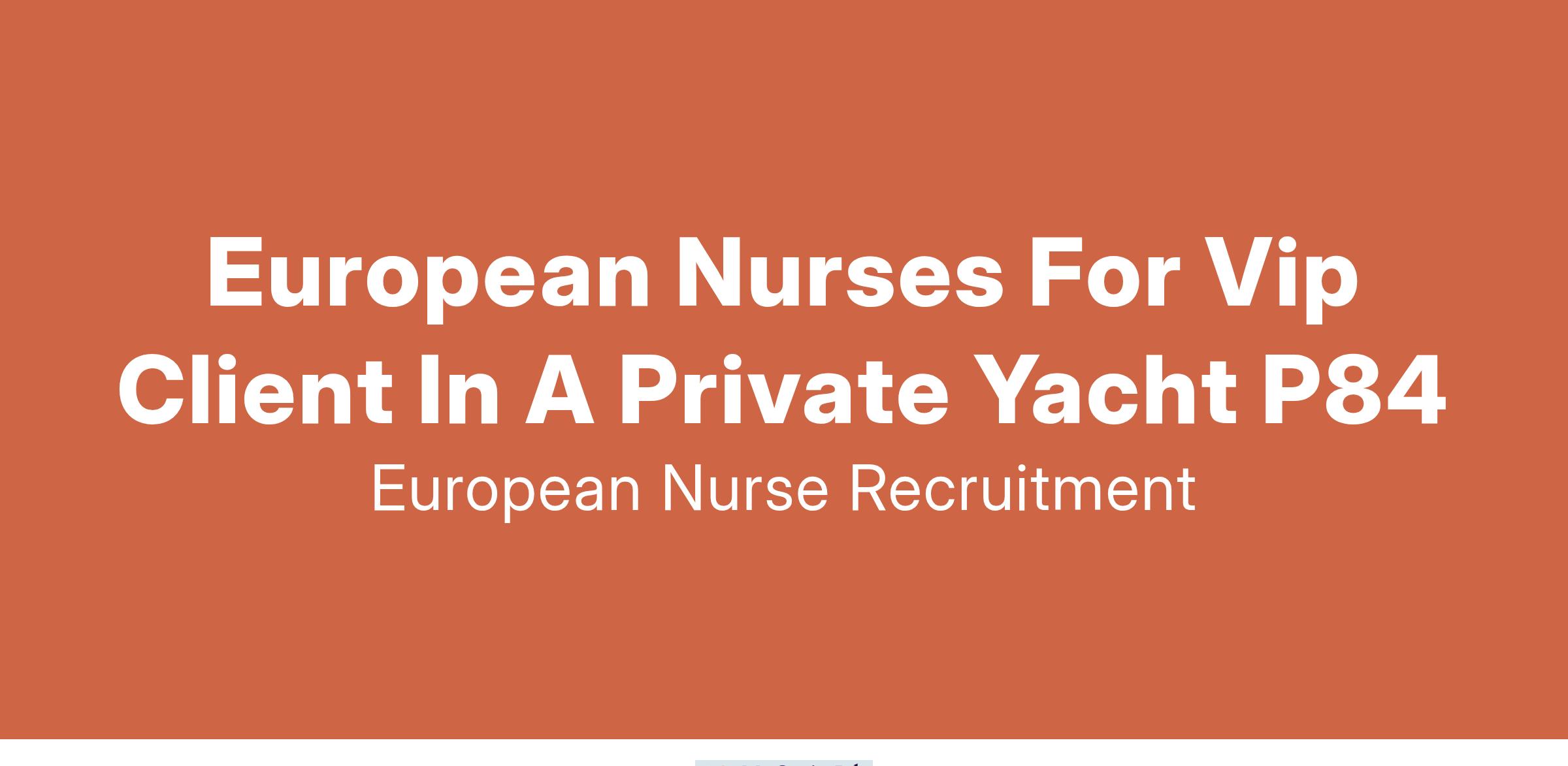 We are seeking European Nurses to provide premium healthcare for a VIP client traveling internationally aboard a luxury private yacht.