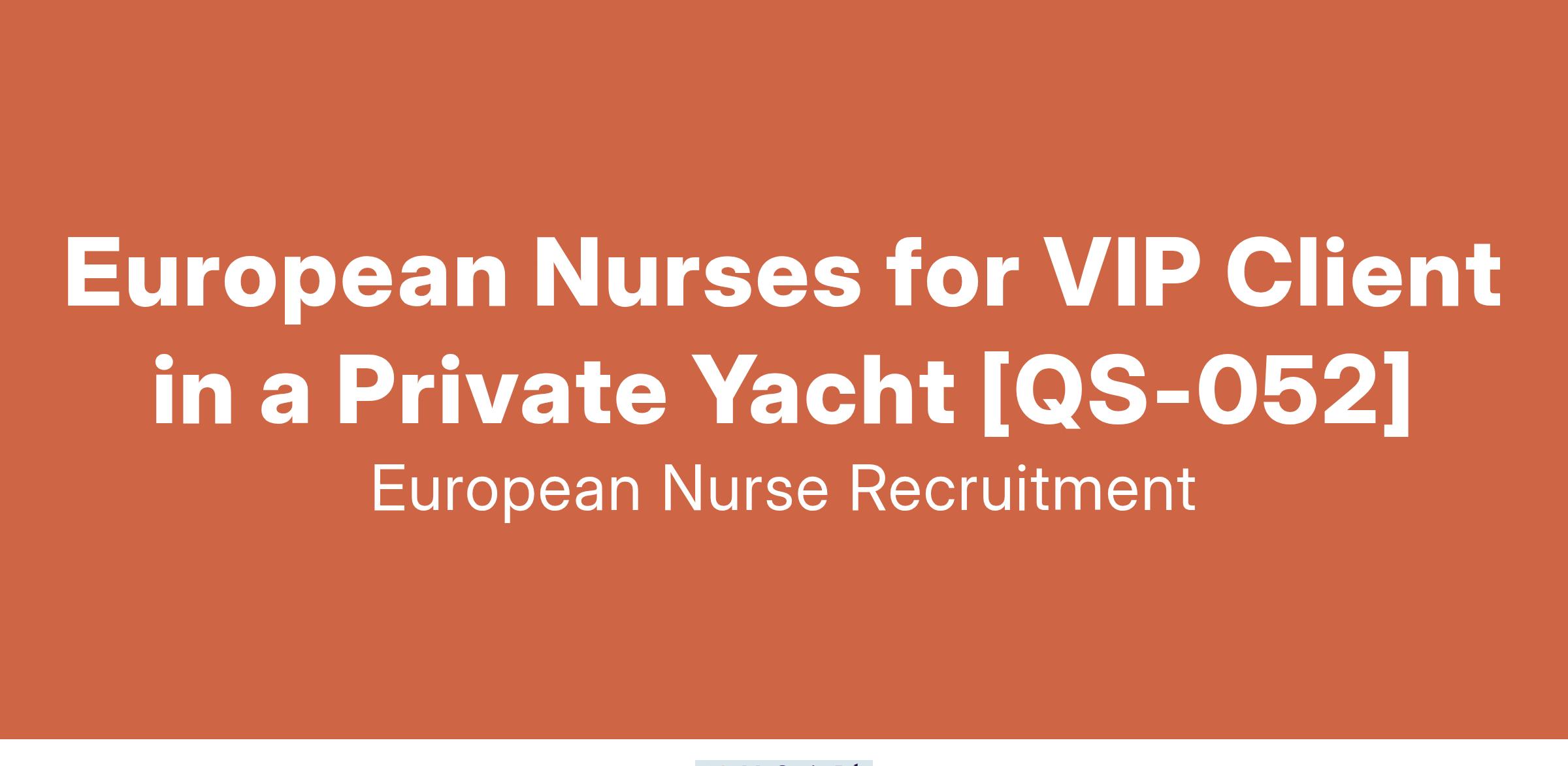 We are seeking European Nurses to provide premium healthcare for a VIP client traveling internationally aboard a luxury private yacht.