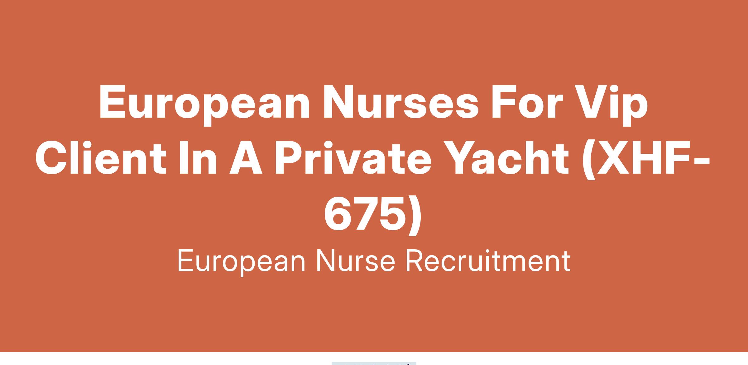 We are seeking European Nurses to provide premium healthcare for a VIP client traveling internationally aboard a luxury private yacht.