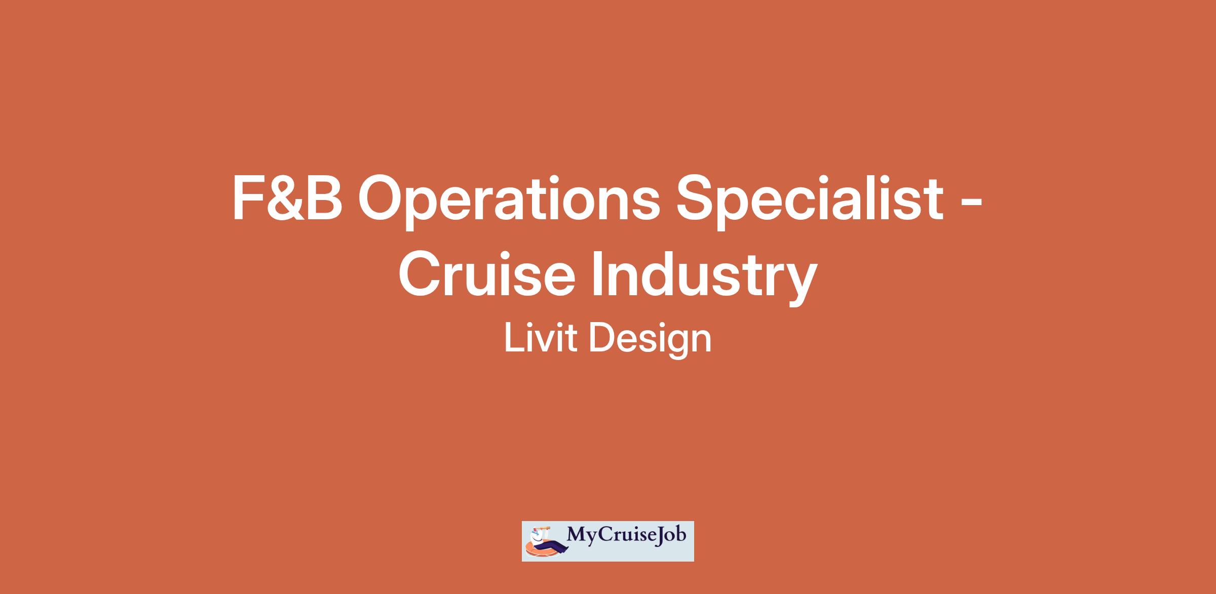 We are looking for an F&B Operations Specialist with deep knowledge and hands-on experience in the cruise F&B sector to join our team.