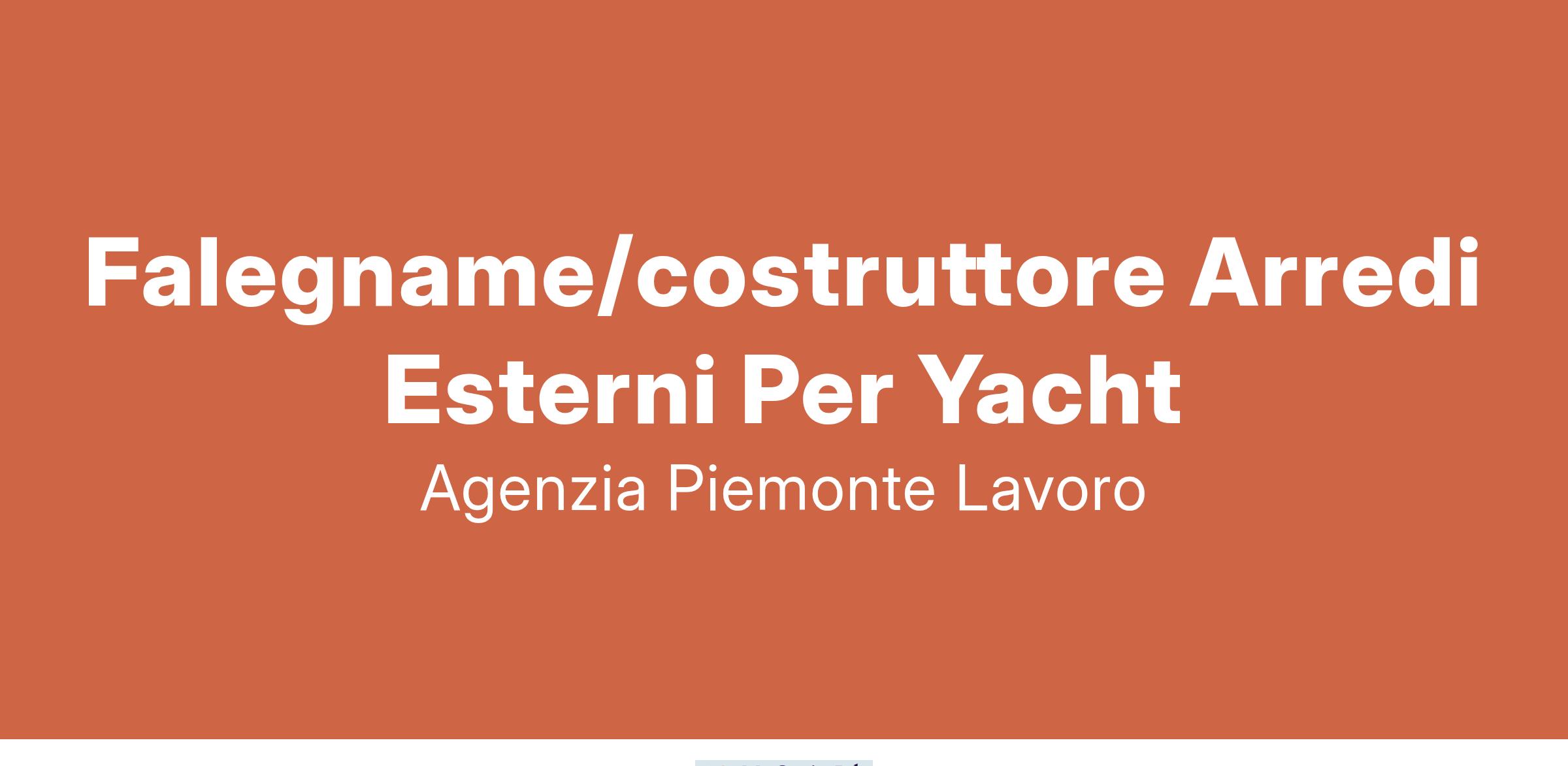 Per azienda saviglianese specializzata nella realizzazione di arredi esterni per yacht si ricercano figure da inserire in organico con capacità di lavorazione legno e montatura. E’ richiesta una mínima esperienza pregressa, preferibile ma non indispensabile.