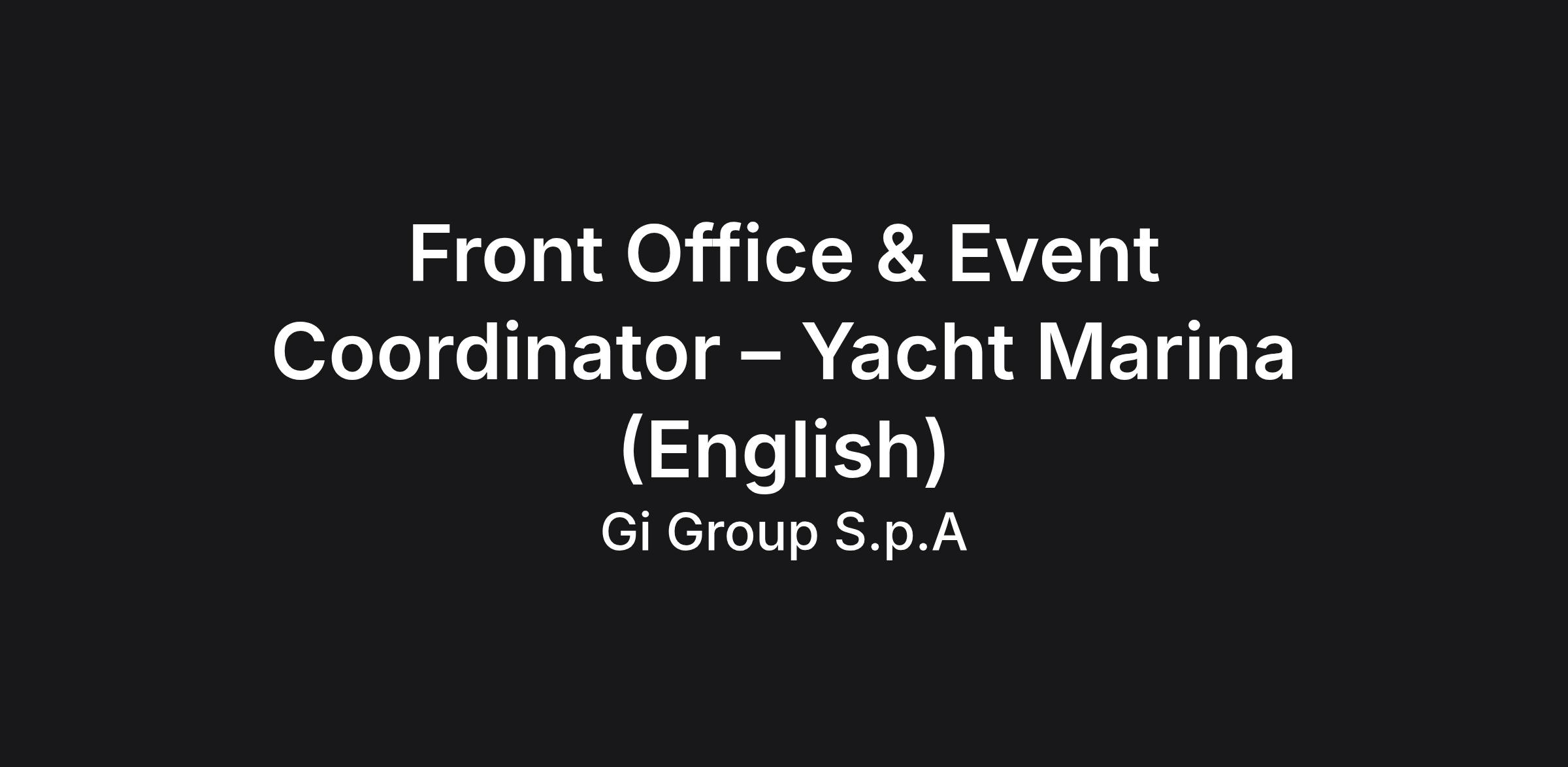 Front Office & Event Coordinator – Yacht Marina (English)