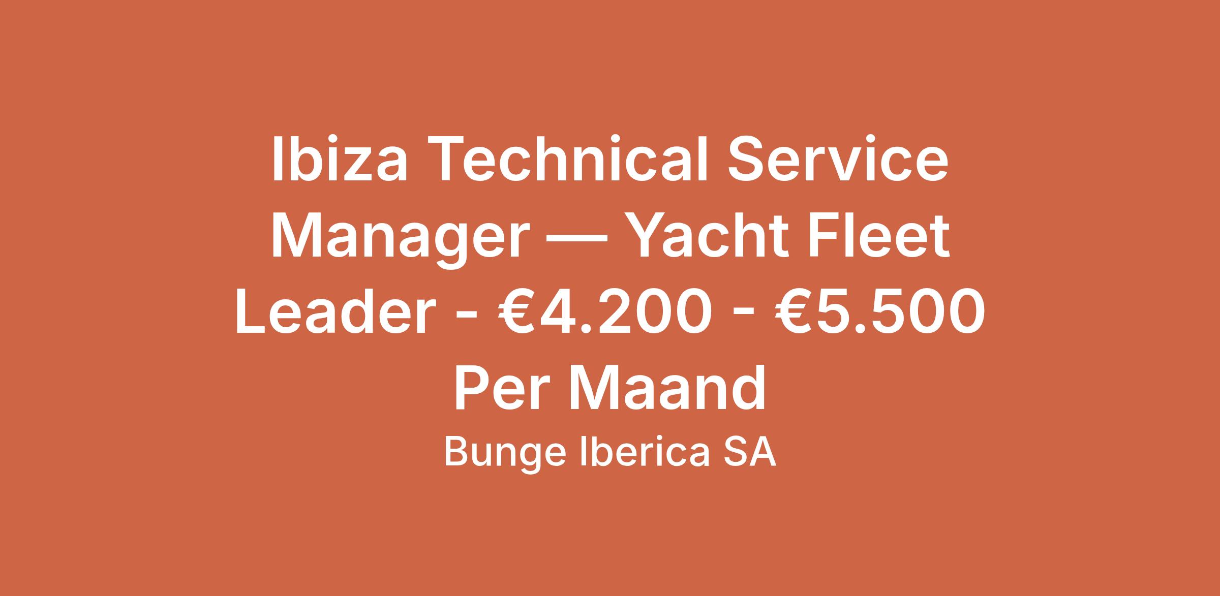 Ibiza Technical Service Manager — Yacht Fleet Leader - €4.200 - €5.500 Per Maand